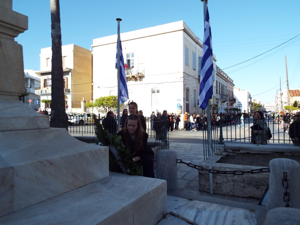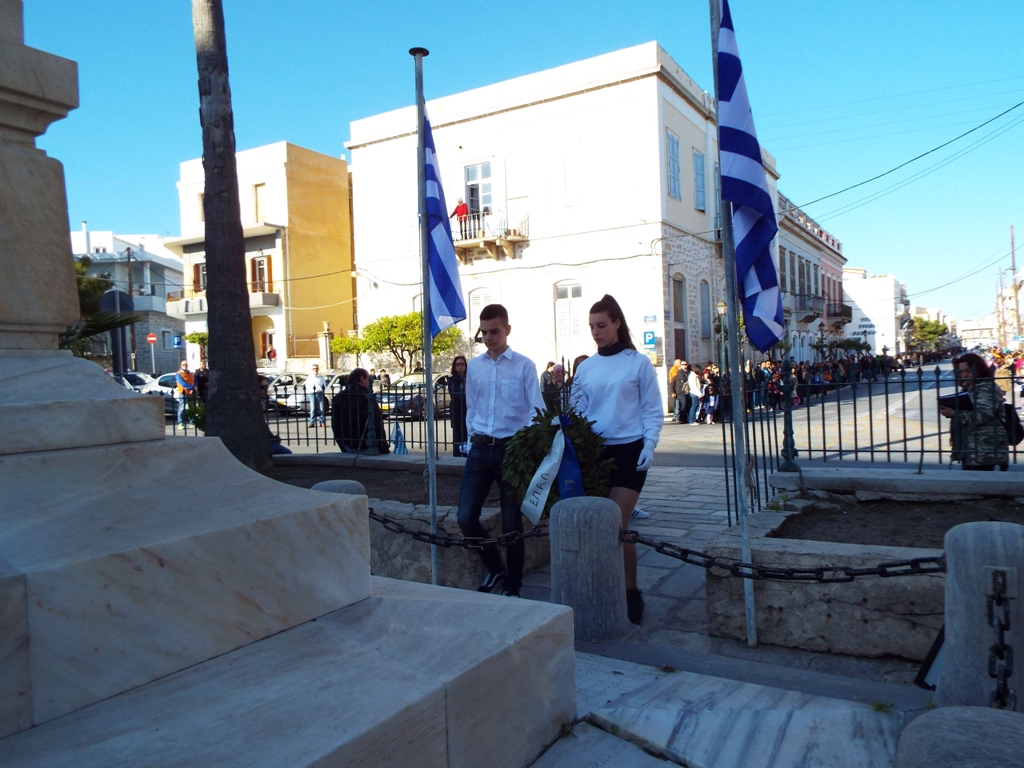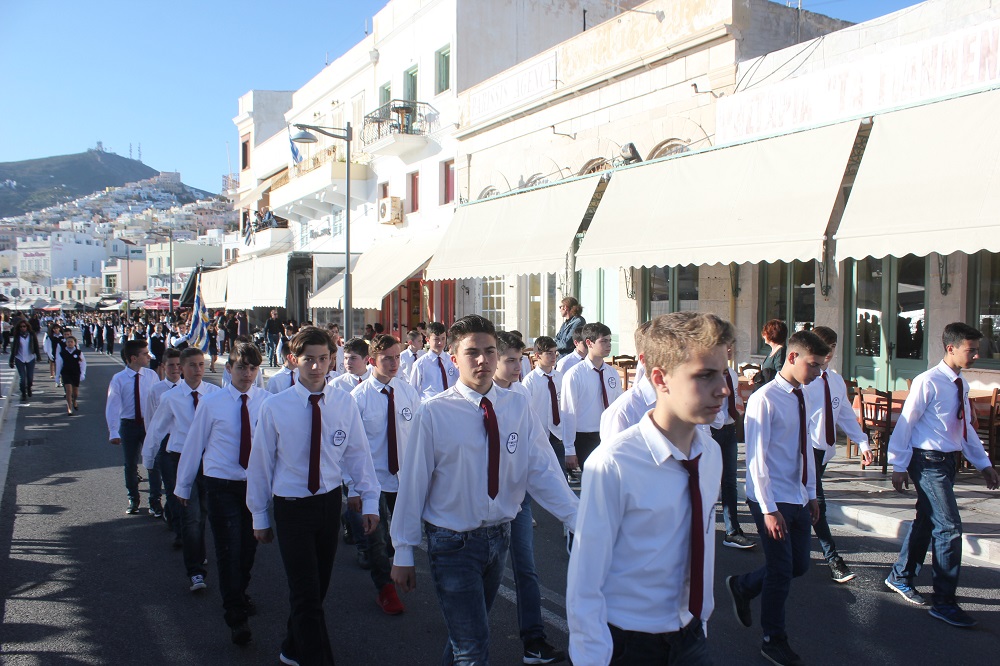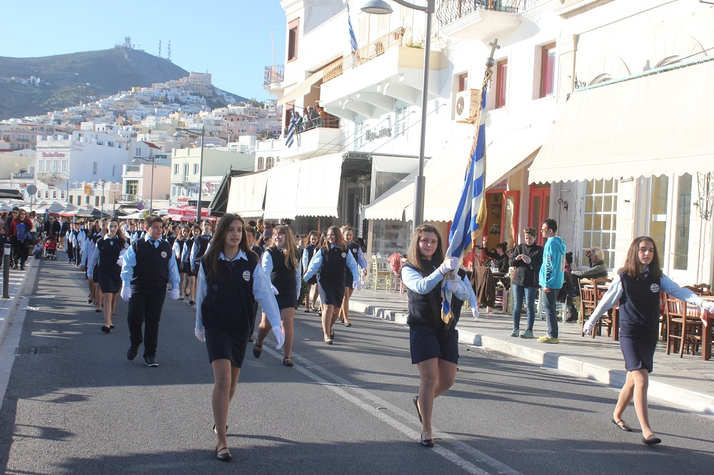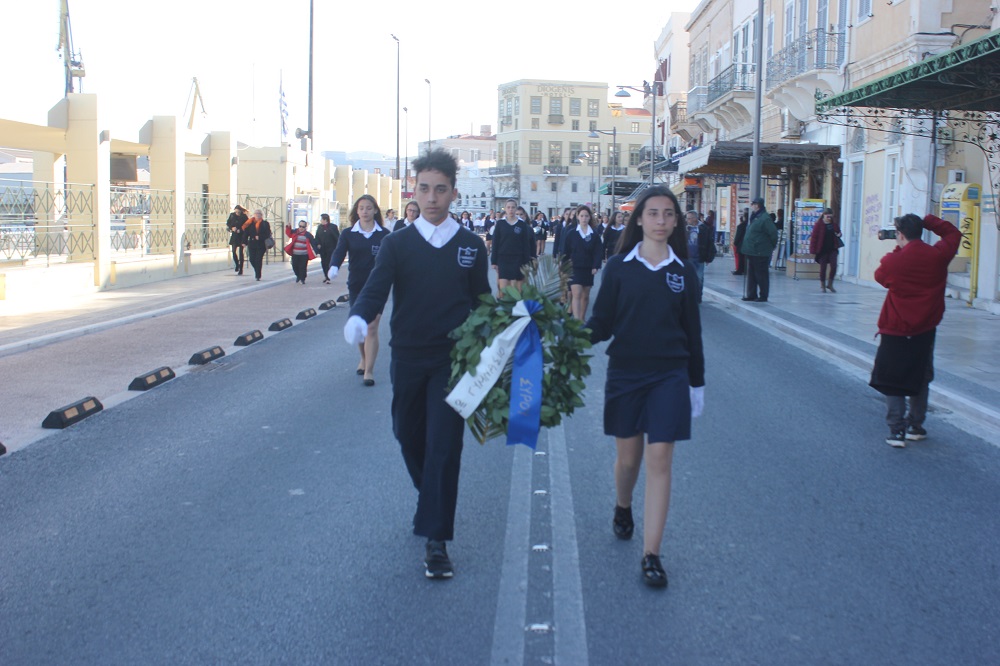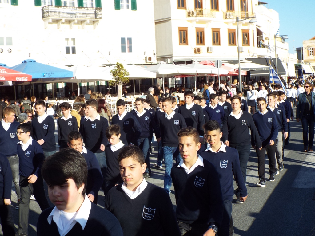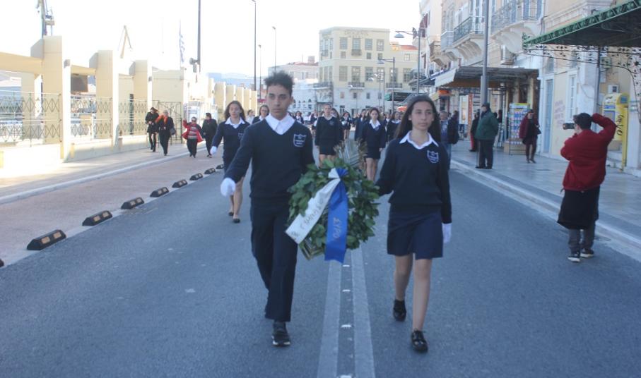 Έχοντας “σύμμαχό” τους τις ευνοϊκές καιρικές συνθήκες, οι μαθητές συντεταγμένοι, απέσπασαν το ζεστό χειροκρότημα των πολιτών, οι οποίοι και παρακολούθησαν τη στεφάνωση στο κέντρο της Ερμούπολης.
