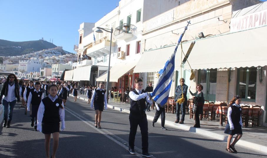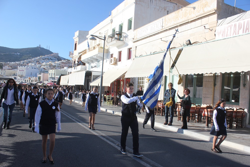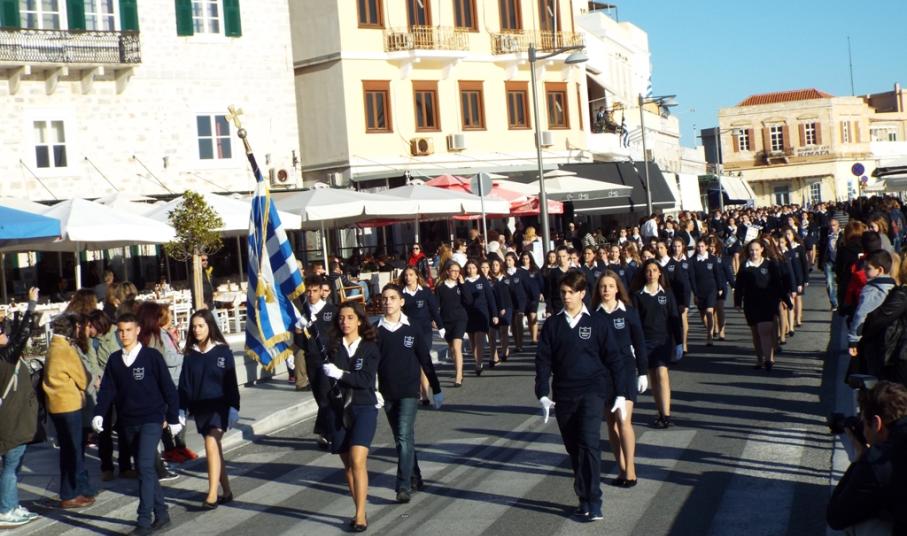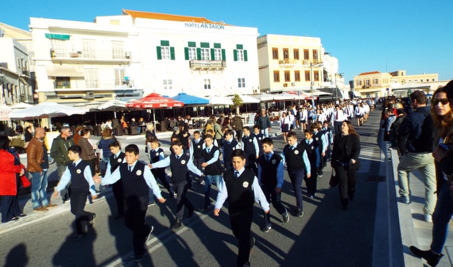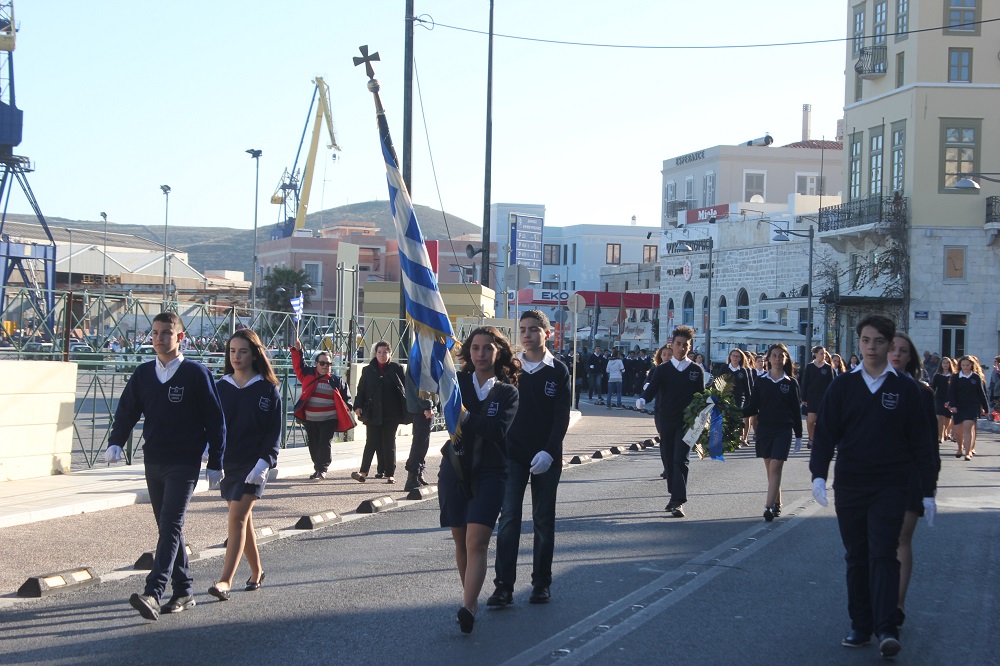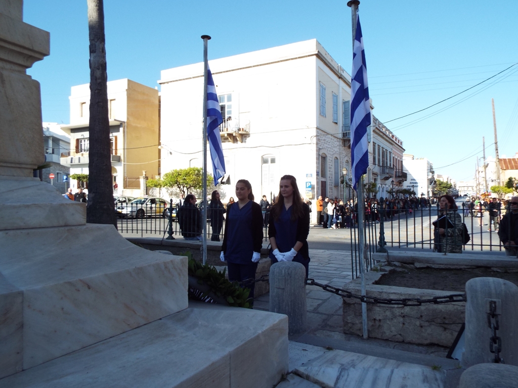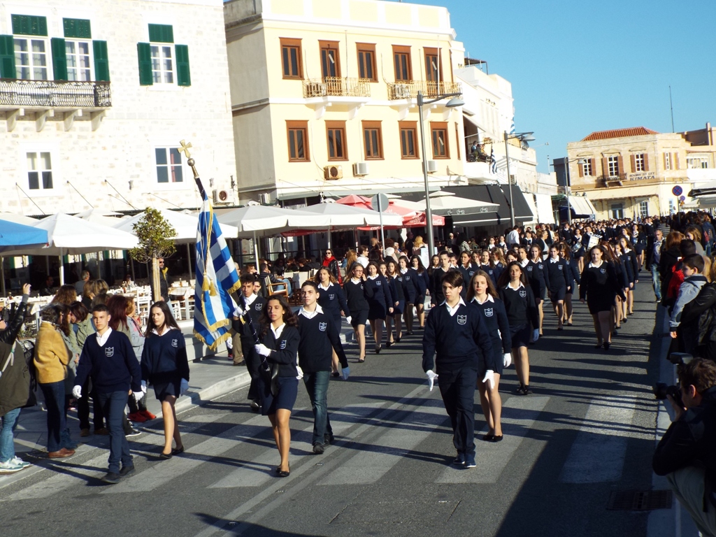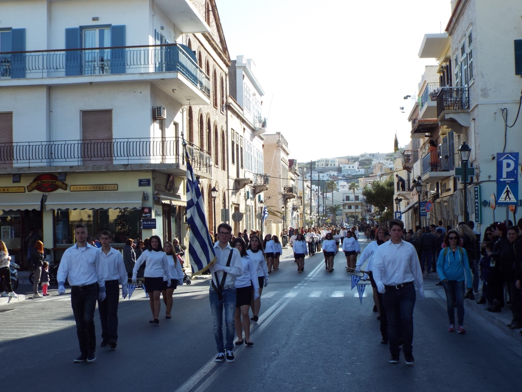 Έχοντας “σύμμαχό” τους τις ευνοϊκές καιρικές συνθήκες, οι μαθητές συντεταγμένοι, απέσπασαν το ζεστό χειροκρότημα των πολιτών, οι οποίοι και παρακολούθησαν τη στεφάνωση στο κέντρο της Ερμούπολης.