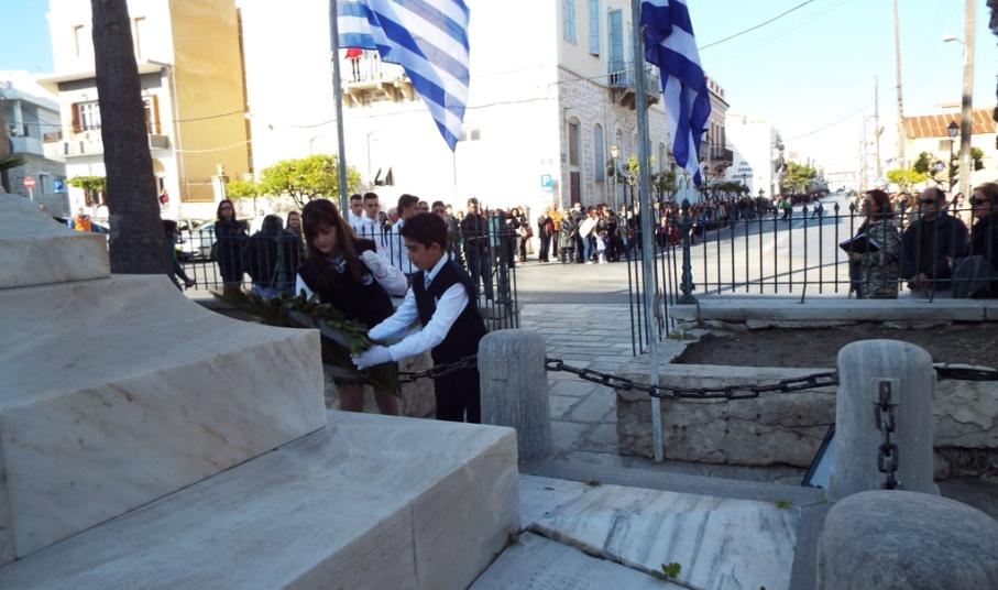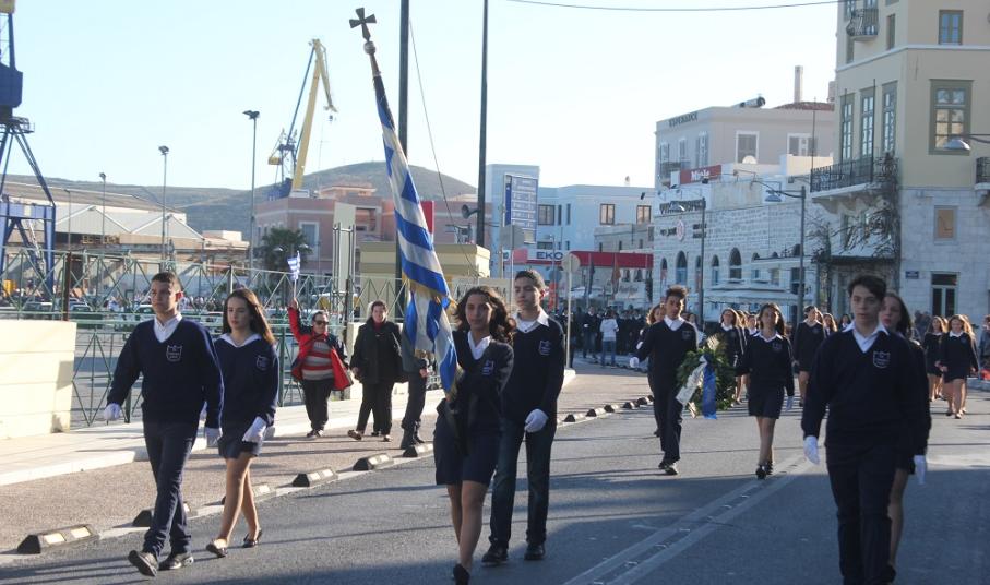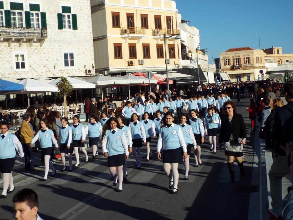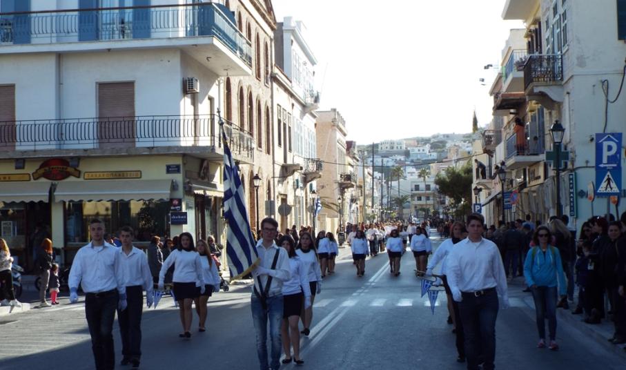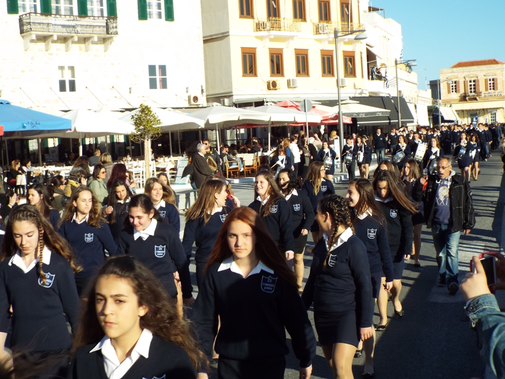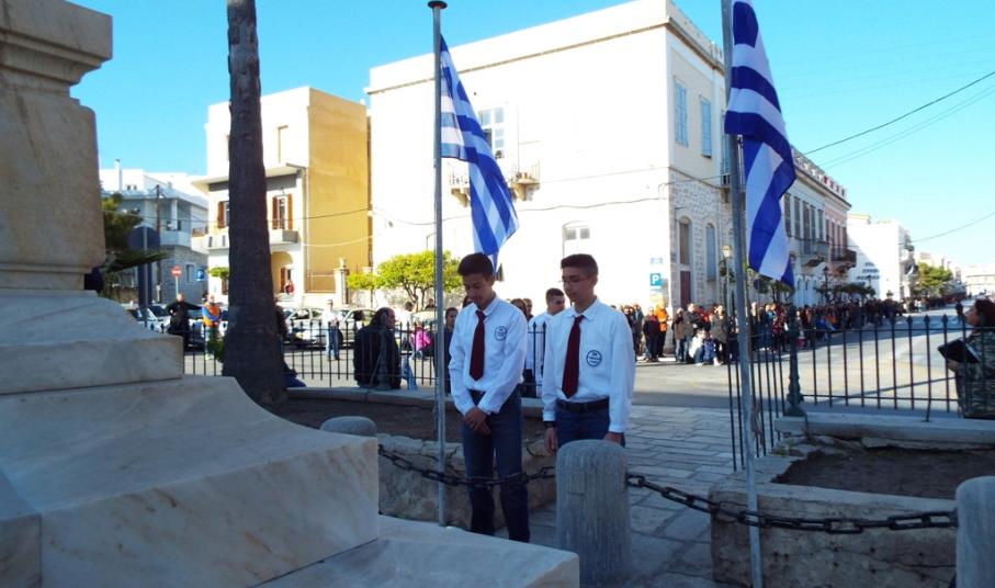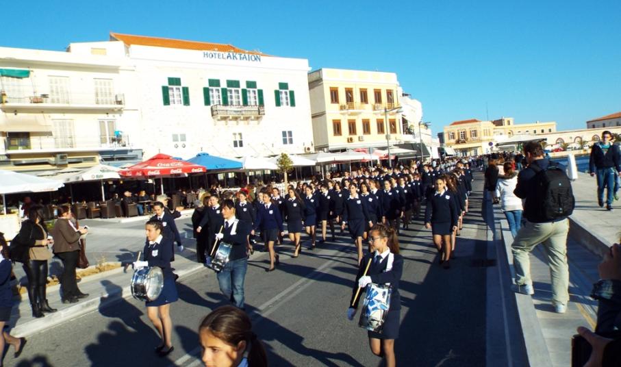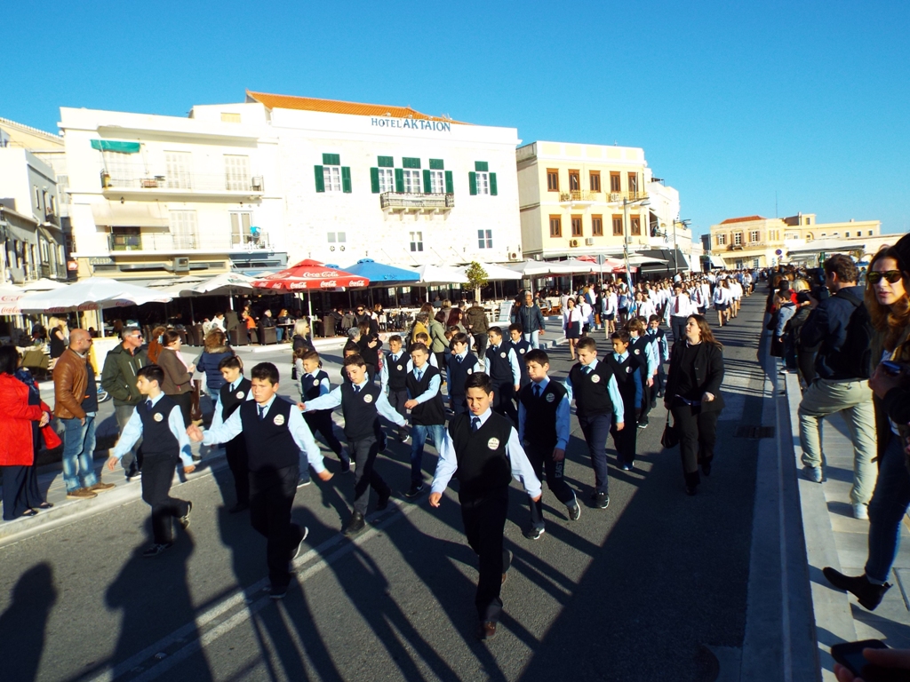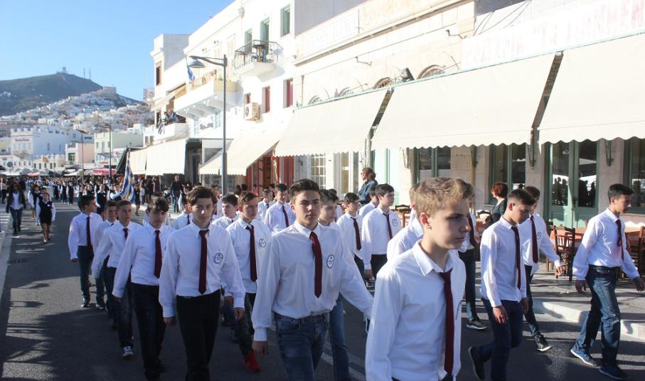 Έχοντας “σύμμαχό” τους τις ευνοϊκές καιρικές συνθήκες, οι μαθητές συντεταγμένοι, απέσπασαν το ζεστό χειροκρότημα των πολιτών, οι οποίοι και παρακολούθησαν τη στεφάνωση στο κέντρο της Ερμούπολης.