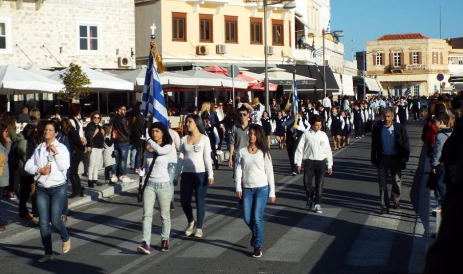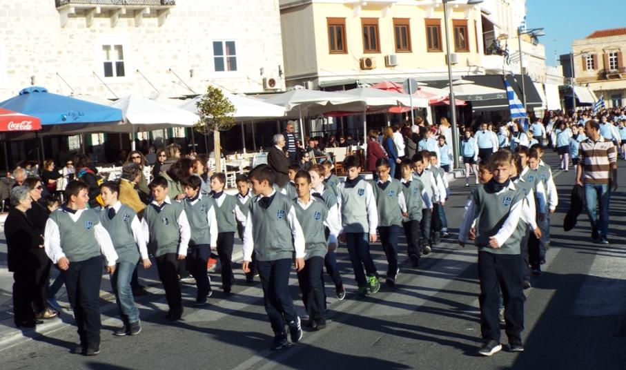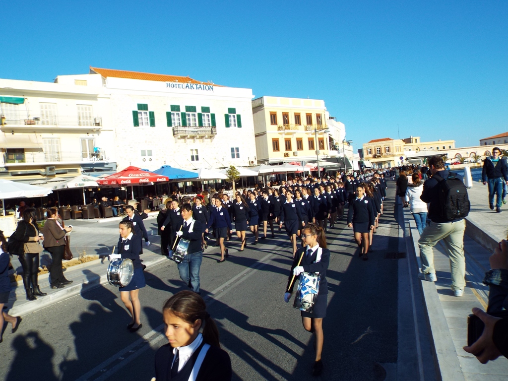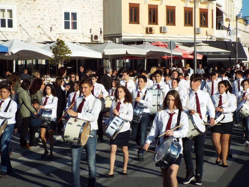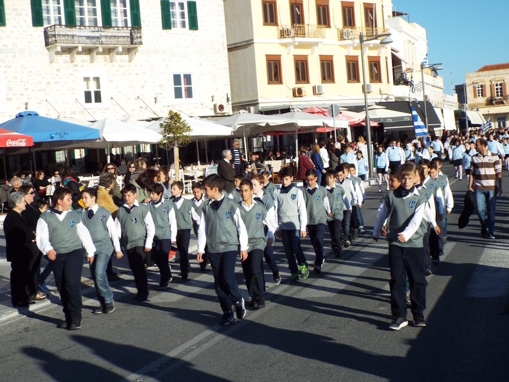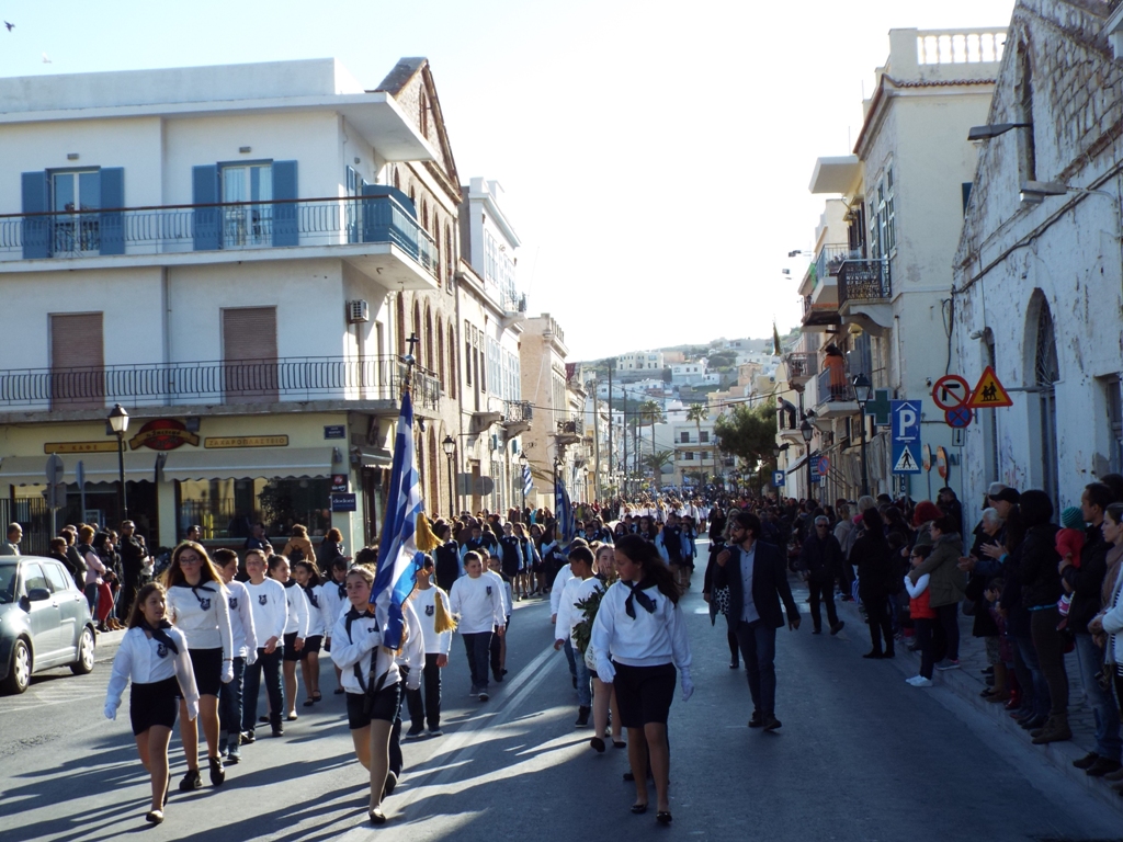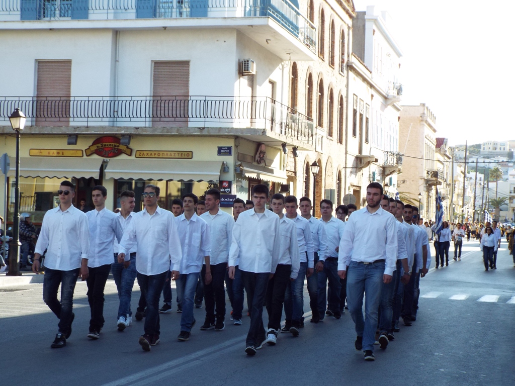 Έχοντας “σύμμαχό” τους τις ευνοϊκές καιρικές συνθήκες, οι μαθητές συντεταγμένοι, απέσπασαν το ζεστό χειροκρότημα των πολιτών, οι οποίοι και παρακολούθησαν τη στεφάνωση στο κέντρο της Ερμούπολης.