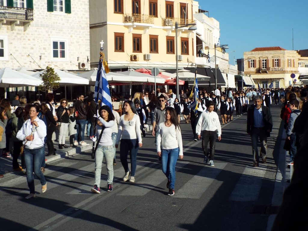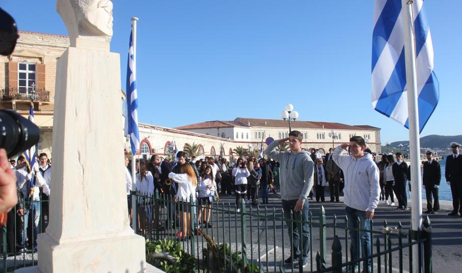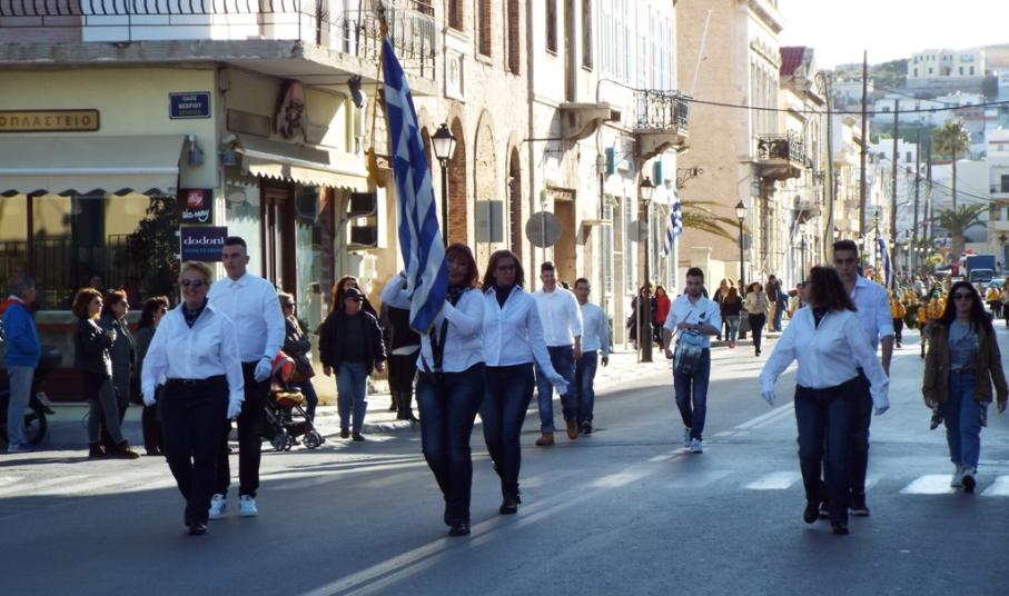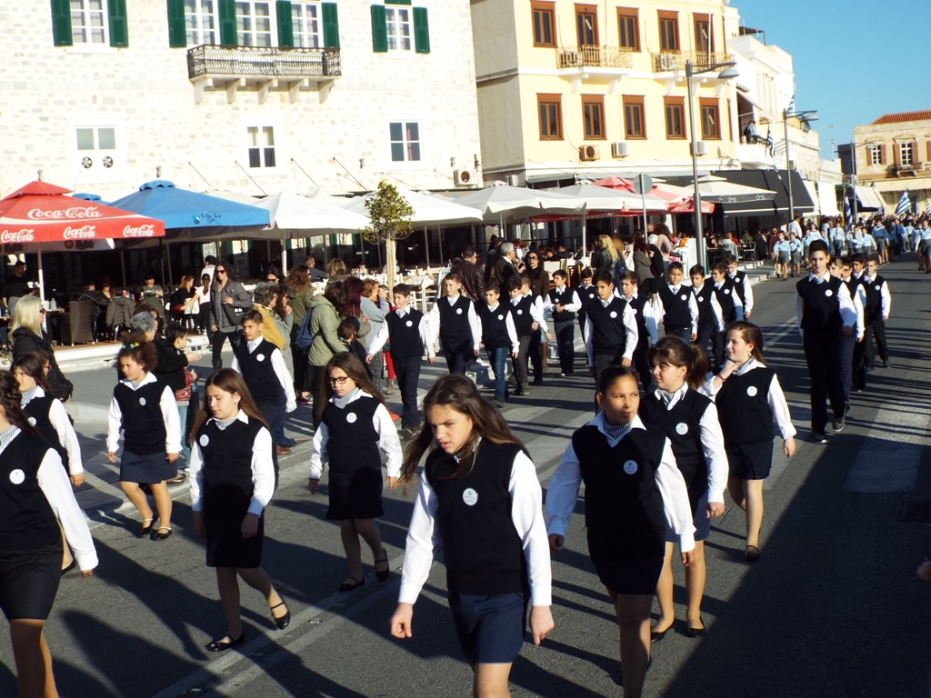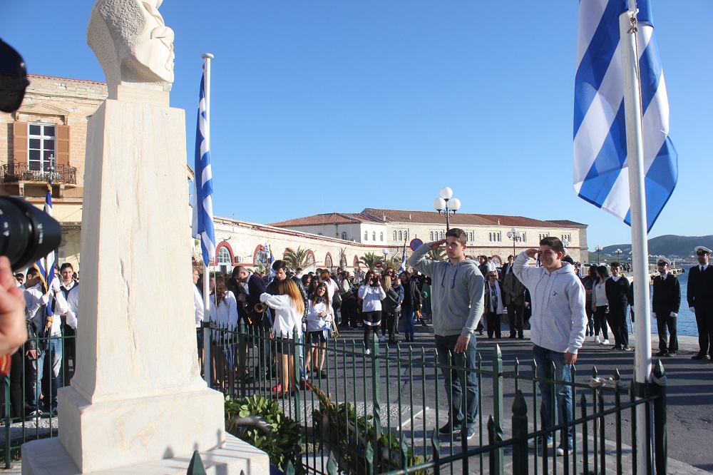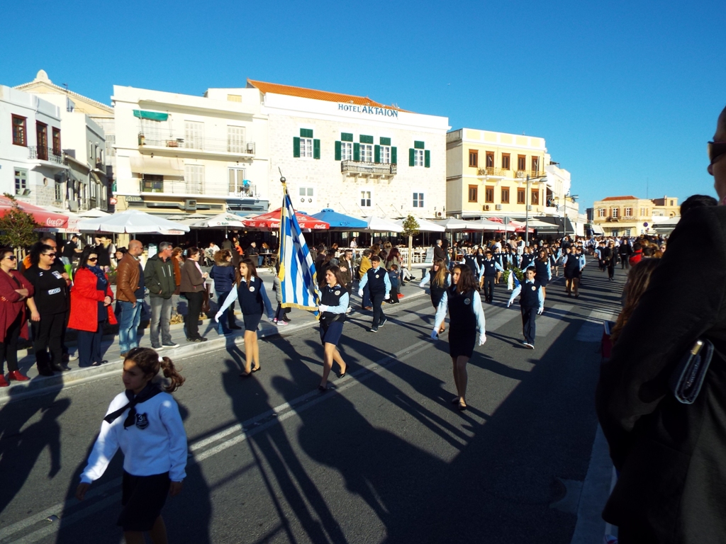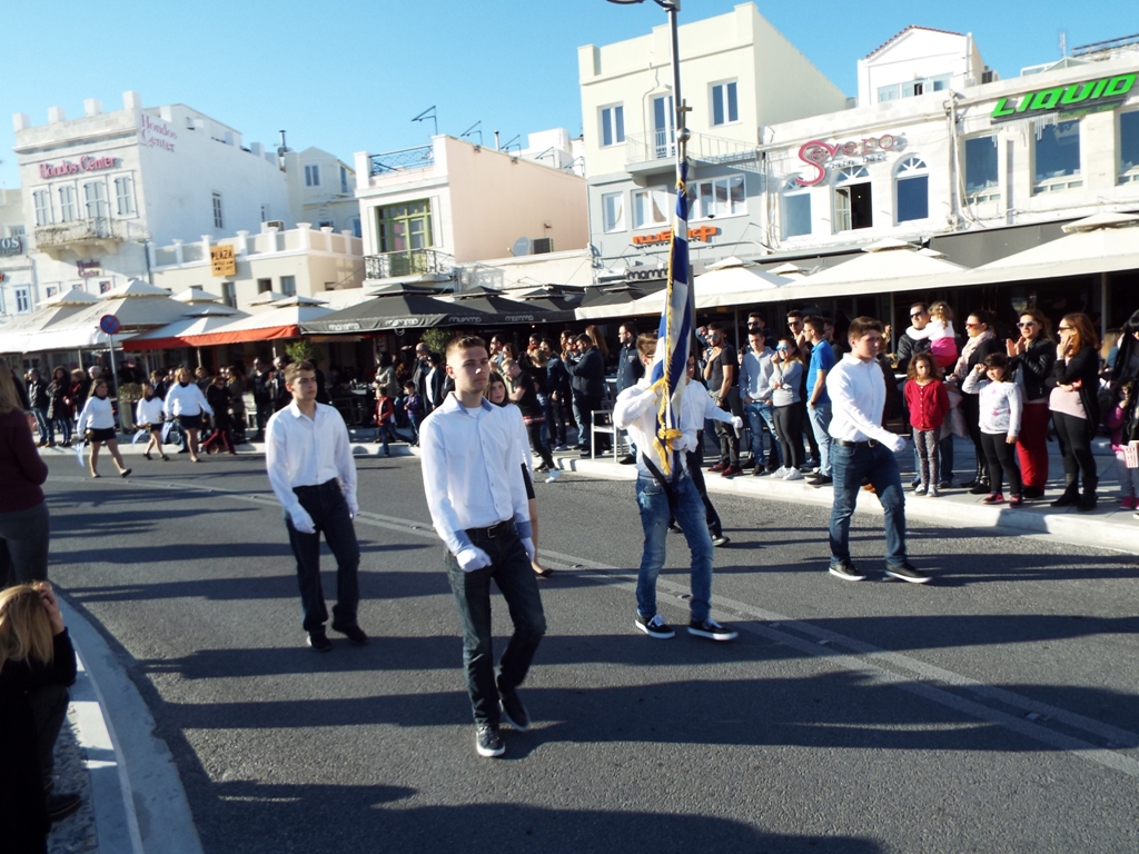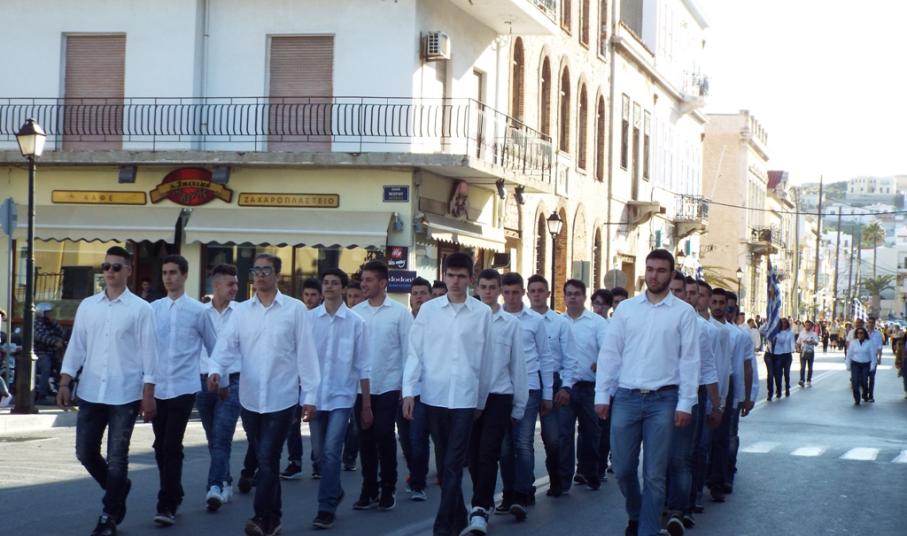 Έχοντας “σύμμαχό” τους τις ευνοϊκές καιρικές συνθήκες, οι μαθητές συντεταγμένοι, απέσπασαν το ζεστό χειροκρότημα των πολιτών, οι οποίοι και παρακολούθησαν τη στεφάνωση στο κέντρο της Ερμούπολης.