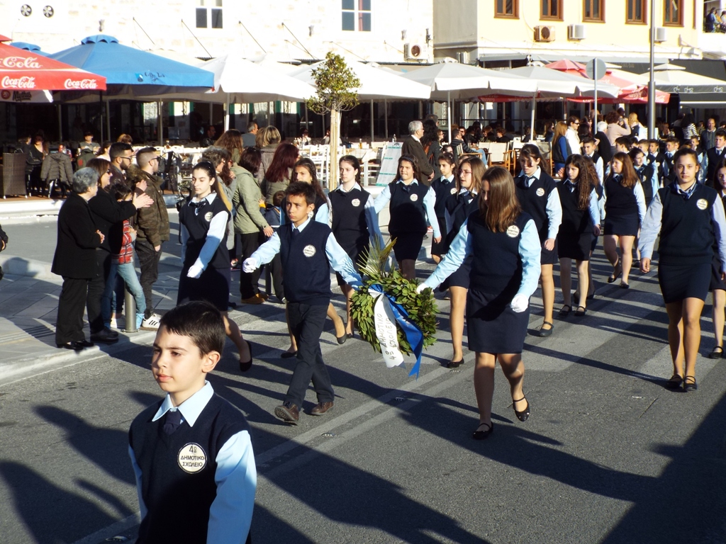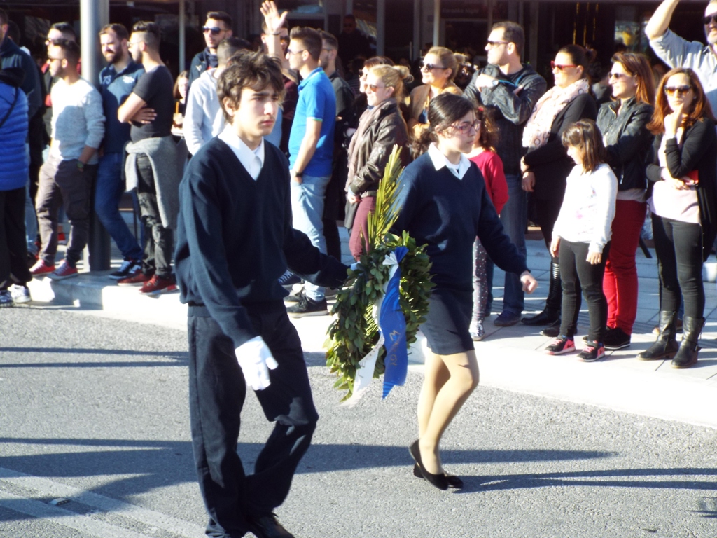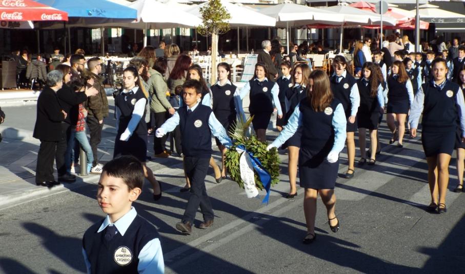 Συνοδευόμενοι από τους υπεύθυνους εκπαιδευτικούς, δασκάλους και καθηγητές τους, καθώς επίσης και από τους βαθμοφόρους, πραγματοποίησαν παρέλαση στις κεντρικές οδούς της πόλης, προσεγγίζοντας στα μνημεία για να τιμήσουν το ηρωικό πνεύμα του αγώνα του 1821.