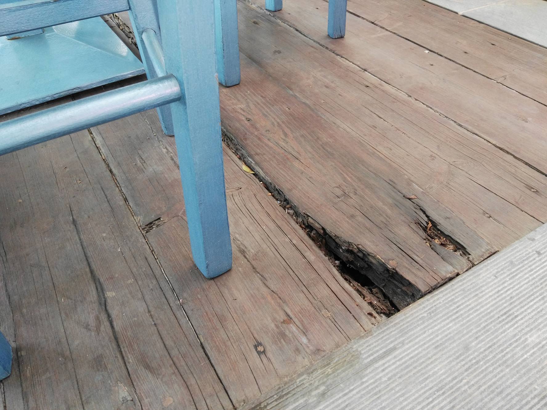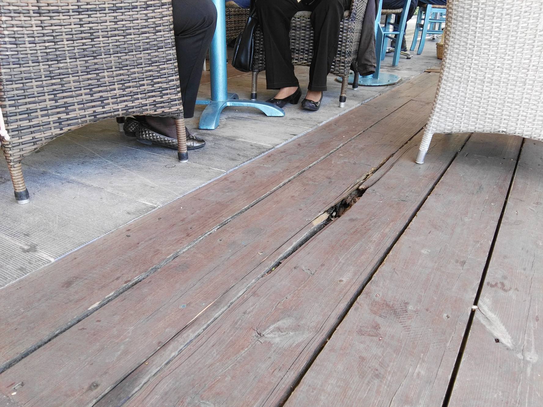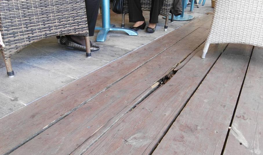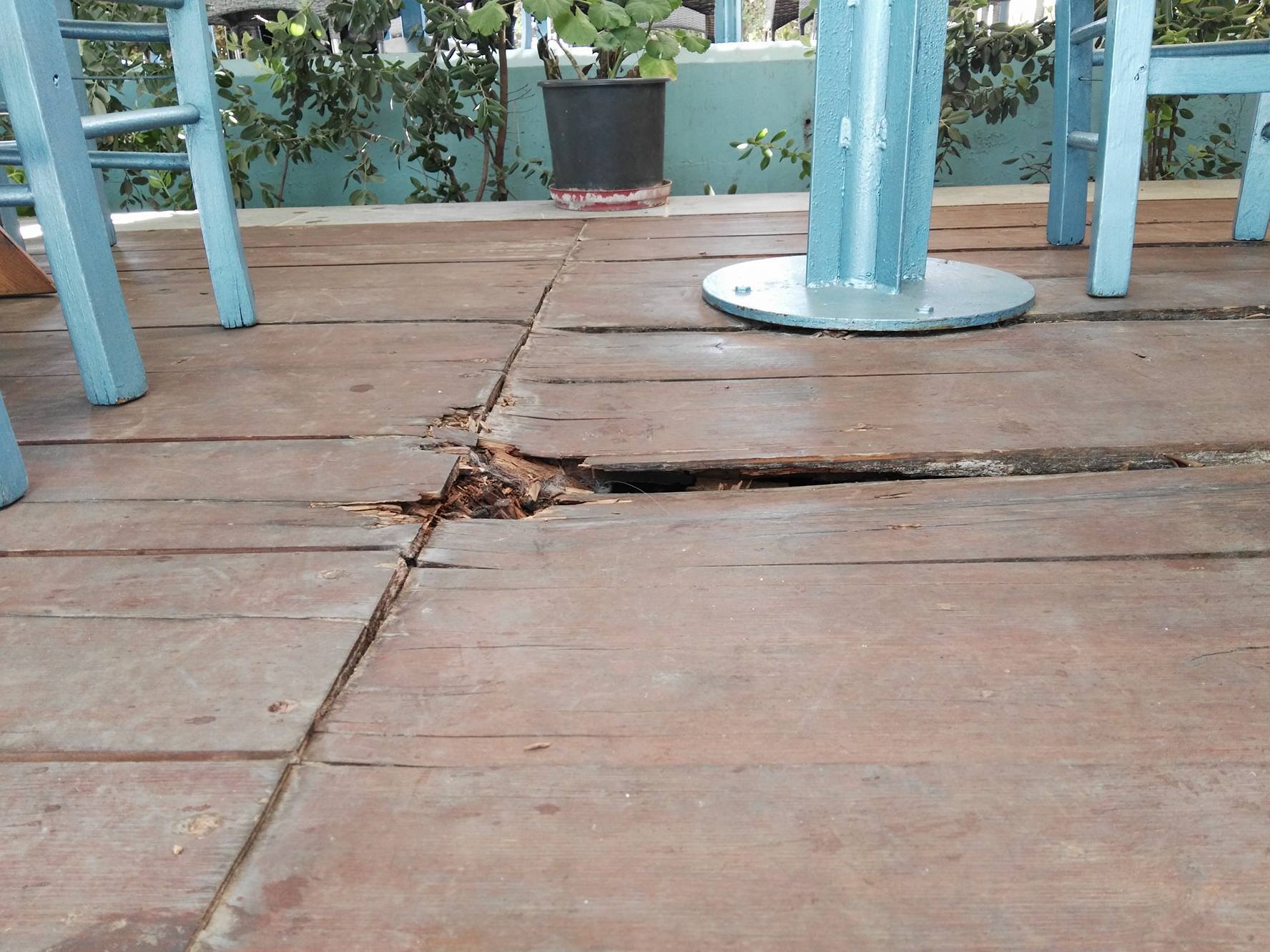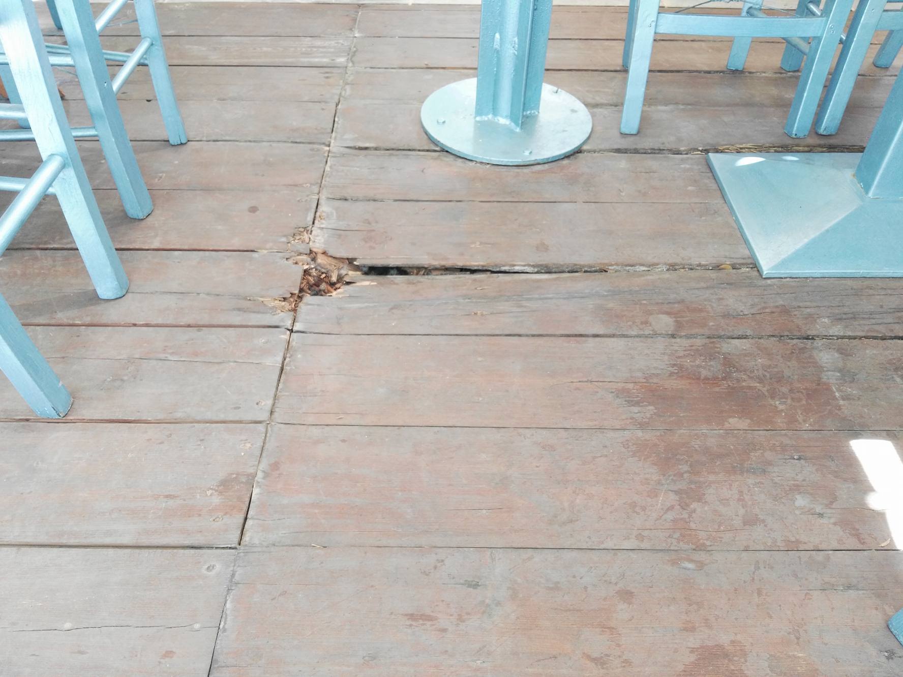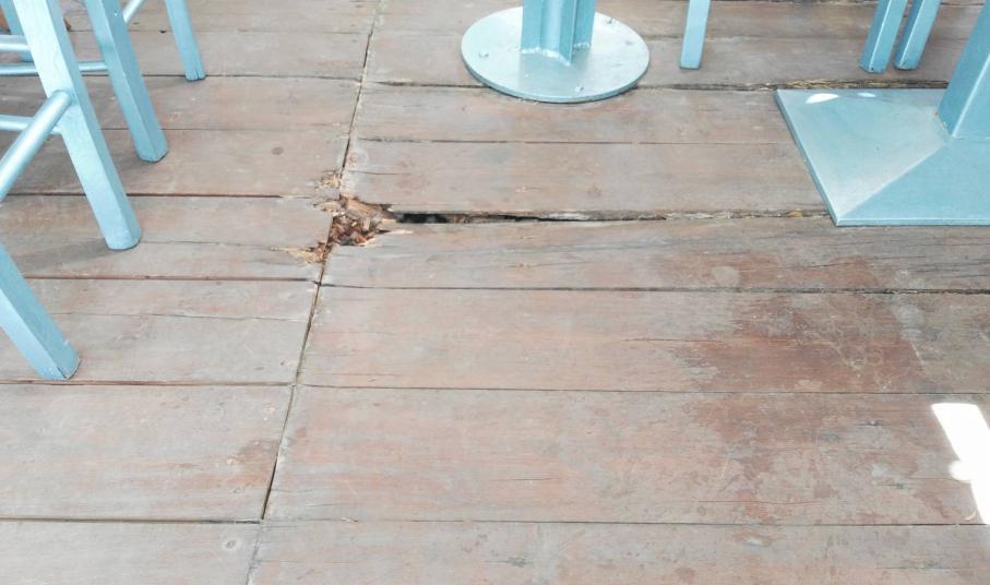 Οι δυσκολίες που συναντούν σε επίπεδο λειτουργίας των επιχειρήσεών τους, αυξάνονται σημαντικά μήνα με τον μήνα, καθώς όπως παρατηρούν οι ίδιοι, προκύπτει αδυναμία ομαλής παραμονής, αλλά και διέλευσης των πελατών και του προσωπικού τους στο ξύλινο δάπεδο, το οποίο έχει υποστεί τεράστιες φθορές, με την αποκόλληση τμημάτων του να καταγράφεται συστηματικά, ενώ σε αρκετά σημεία της επιφάνειάς του, έχουν “ανοίξει” τρύπες.
