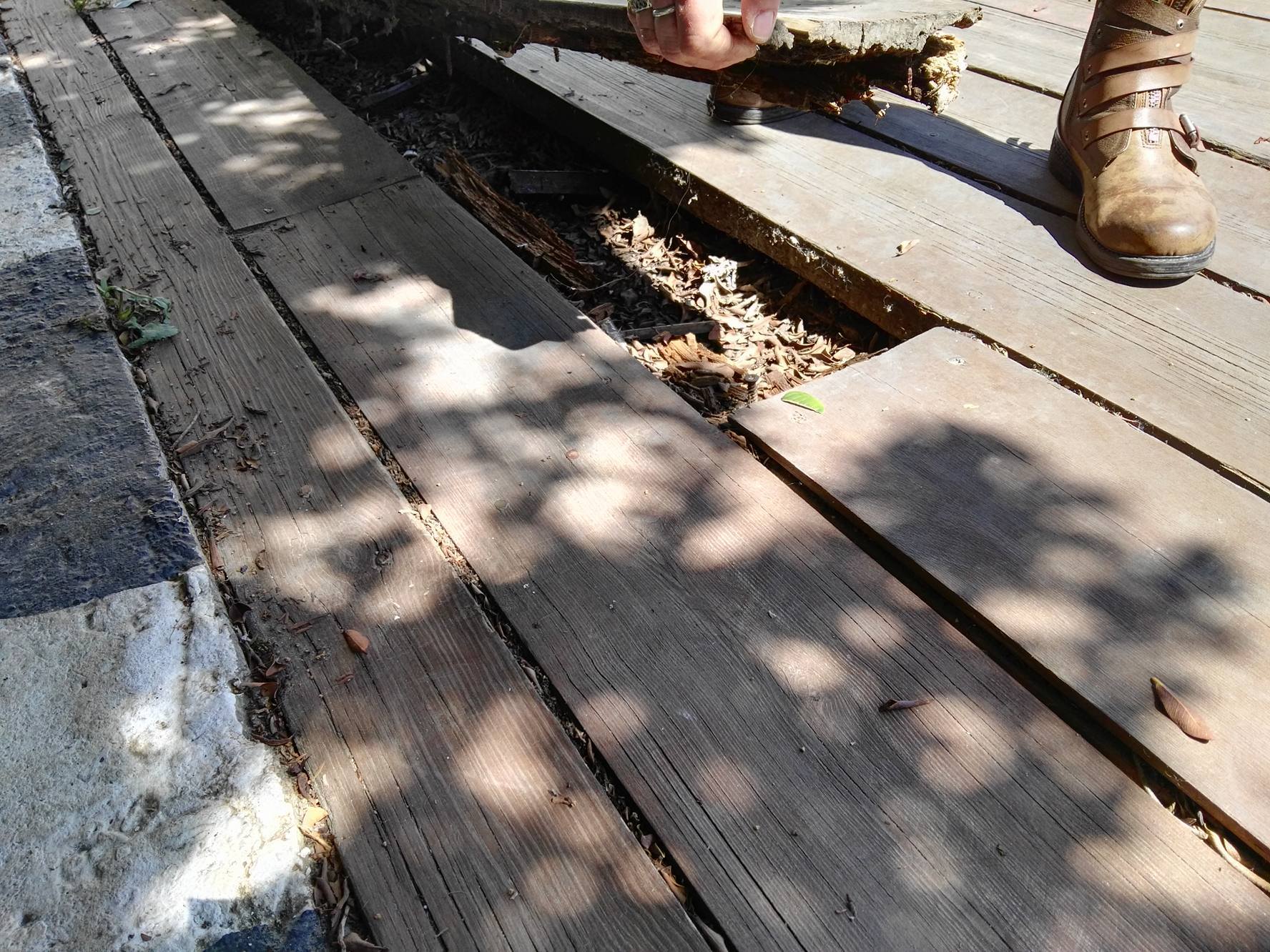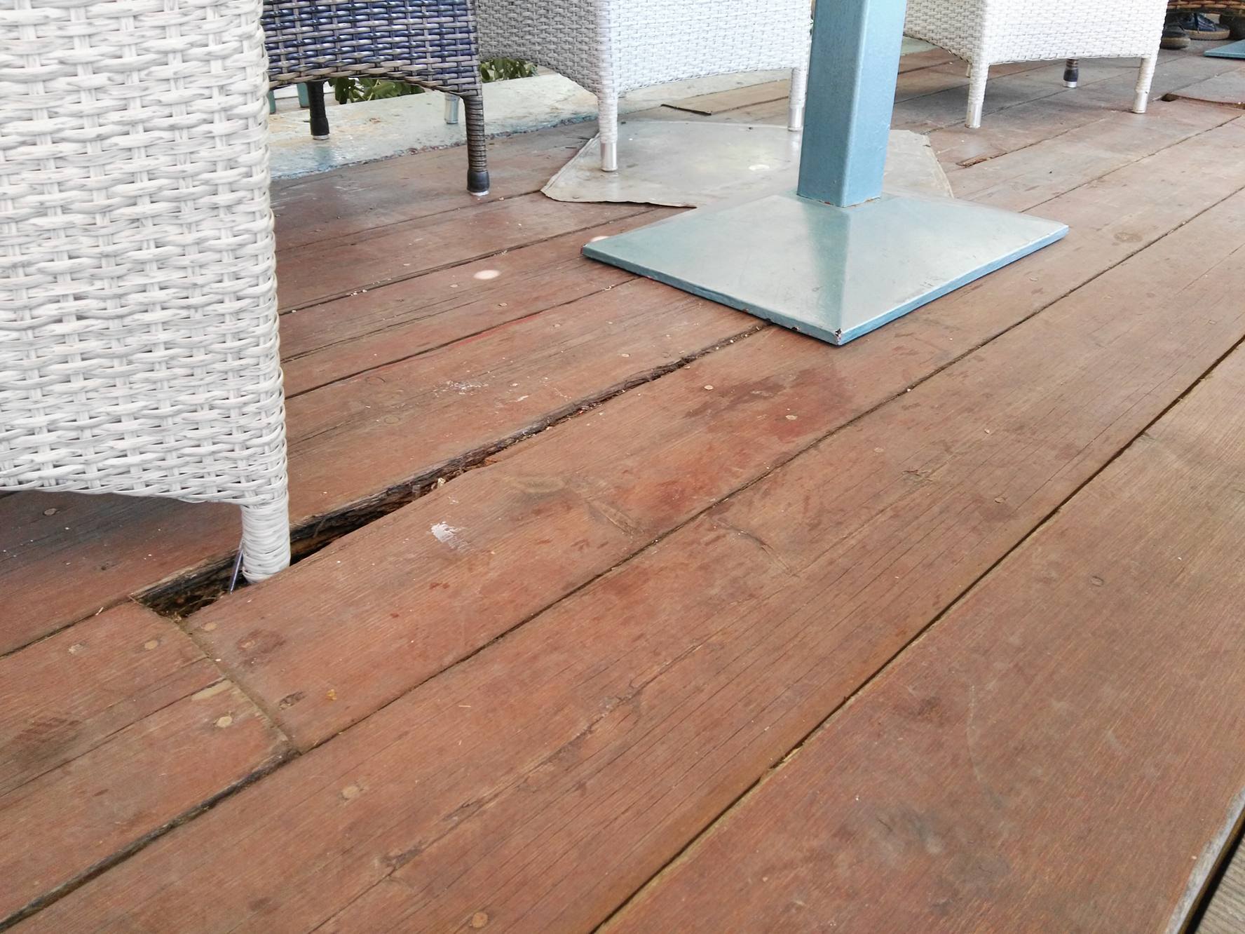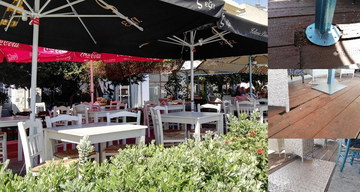 Περιγράφοντας κάποια από τα σημαντικότερα προβλήματα που διαπιστώνουν καθημερινά, σημείωσαν πως, “Τοποθετούμε τα τραπεζοκαθίσματα επάνω σε κενά, σε τρύπες, σε σάπια ξύλα”. Επιπλέον, υπογράμμισαν πως, “Μόνοι μας έχουμε βάλει “μπαλώματα” για να μπορεί να πατά ο κόσμος”, ενώ δεν παρέλειψαν να επισημάνουν τον κίνδυνο πρόκλησης ατυχήματος τόσο για τους πελάτες τους, όσο και για το προσωπικό τους. “Χτυπούν ηλικιωμένοι και παιδιά. Δεν μπορούμε να συνεχίσουμε με αυτόν τον τρόπο. Δεν μπορεί να δουλέψει το προσωπικό μας” συμπλήρωσαν χαρακτηριστικά, λέγοντας ειδικότερα, πως, “και τα τμήματα πρόσβασης προς το πάρκο και την πολυκατοικία, είναι σε κάκιστη κατάσταση. Πέφτουν τα πόδια από τις καρέκλες στα κενά και δεν μπορούν να στηριχθούν ομπρέλες. Αναζητούμε προσωρινές λύσεις. Επιτέλους να γίνει κάτι” τόνισαν κατηγορηματικά.