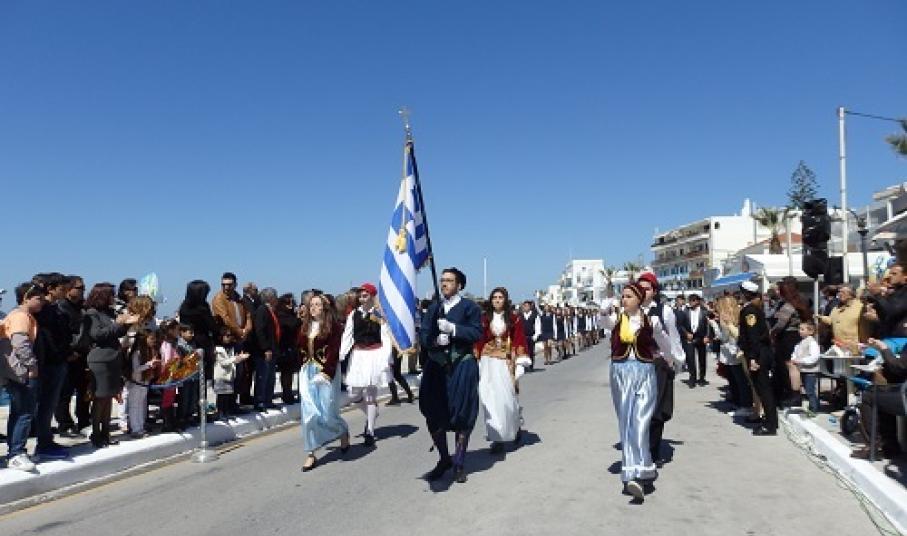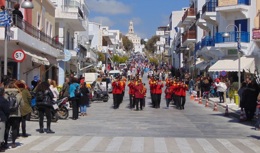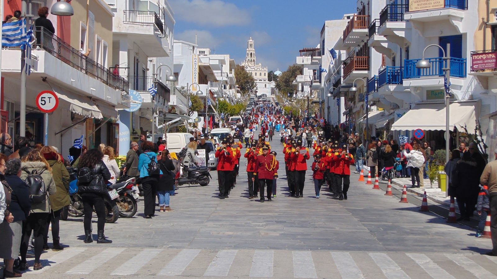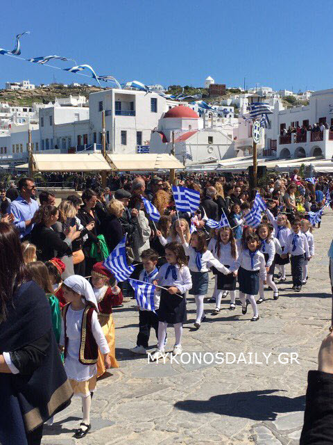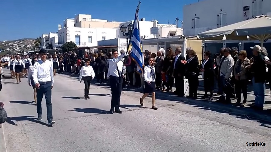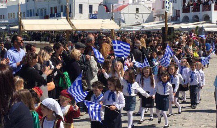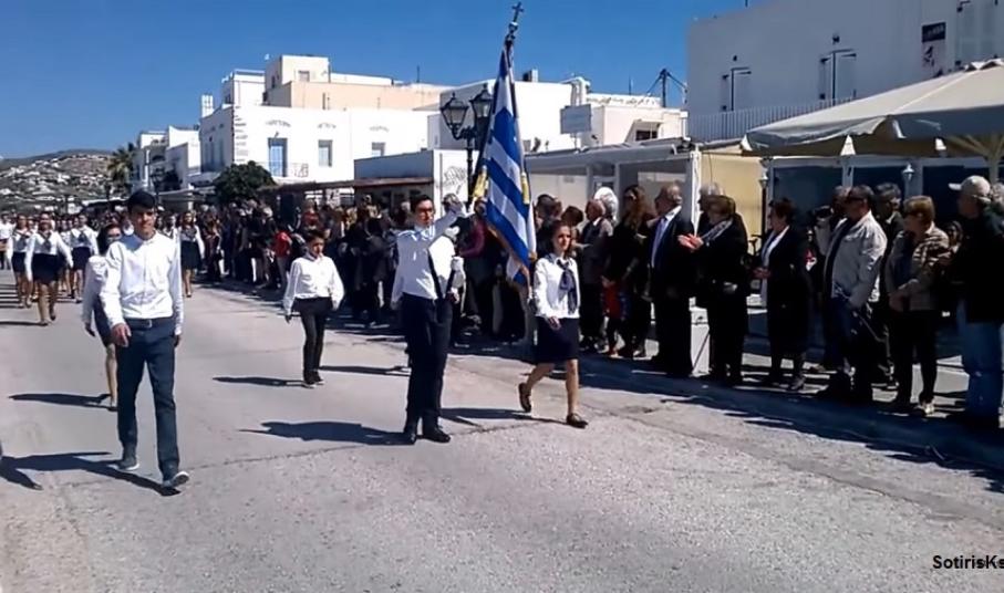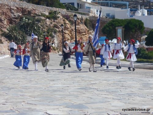 Την ελληνική σημαία ύψωσαν υπερήφανα, παρελαύνοντας με τις επίσημες αμφιέσεις των σχολείων, ή παραδοσιακές τοπικές φορεσιές, οι μαθητές όλων των Κυκλάδων, τιμώντας την εθνική επέτειο της Επανάστασης του 1821.