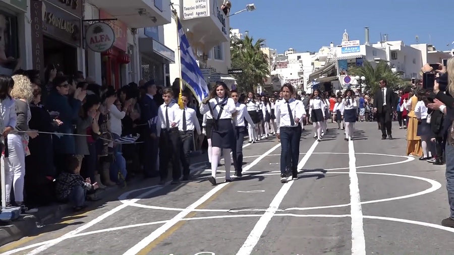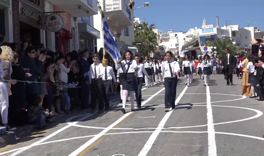 Μεγάλη μαθητική και στρατιωτική παρέλαση πραγματοποιήθηκε και στο κέντρο της Σαντορίνης, κατόπιν της Θείας Δοξολογίας και της κατάθεσης στεφάνων στη μνήμη των ηρώων, τα οποία παρακολούθησαν πλήθος κόσμου, με σύμμαχο τον ηλιόλουστο καιρό.