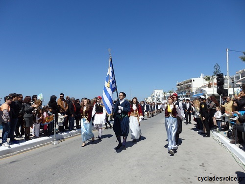 Αν και πολλές εξ αυτών μικρές σε αριθμό λόγω της συνεχούς “φυγής” των νέων γενεών, ωθούμενοι από τις δυσκολίες και τις αντιξοότητες, που επιφυλάσσει η ζωή στα μικρότερα κυρίως νησιά, μεγαλειώδεις και υπερήφανες υπήρξαν οι μαθητικές παρελάσεις σε όλα τα νησιά των Κυκλάδων, για την εθνική επέτειο της 25ης Μαρτίου.