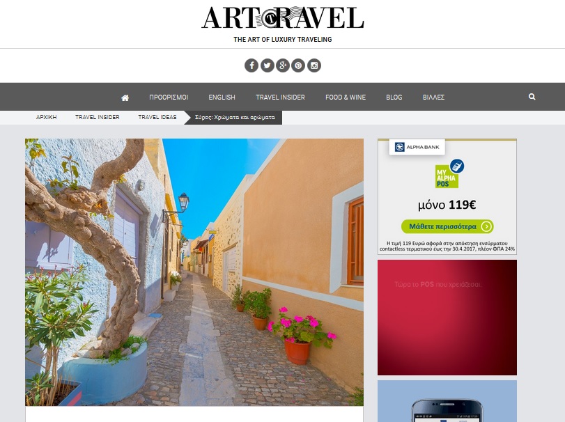 Τον ιδιαίτερο χαρακτήρα της πρωτεύουσας των Κυκλάδων που μπορεί να προσελκύσει τουρισμό πολυτελείας προβάλλει ένα ειδικό αφιέρωμα του Art Travel προωθώντας τη Σύρο ως έναν ιδανικό προορισμό που αξίζει να επισκεφθεί όποιος επιθυμεί όχι μόνον το καλοκαίρι, αλλά κυρίως όλον τον χρόνο.