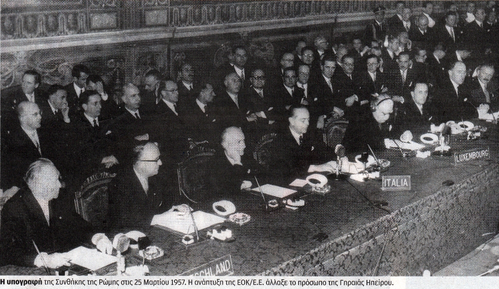 Πριν από ακριβώς εξήντα χρόνια υπεγράφη στη Ρώμη η ιδρυτική συνθήκη της Ευρωπαϊκής Οικονομικής Κοινότητας (Ε.Ο.Κ). Σήμερα πάλι στη Ρώμη, οι ηγέτες των 27 χωρών της Ευρωπαϊκής Ένωσης θέλησαν να δώσουν νέα πνοή στο αρχικό όραμα.