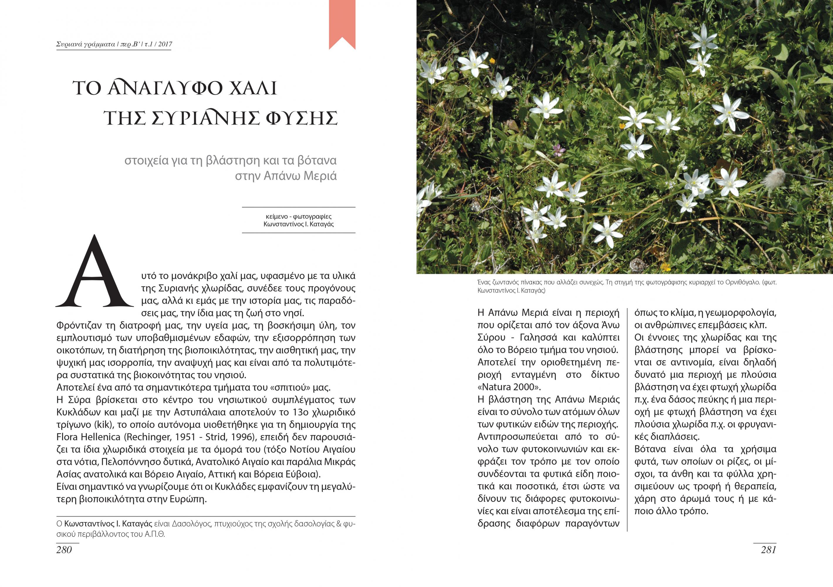 Η επανακυκλοφορία των Συριανών Γραμμάτων ξεκινά τον κύκλο της Β΄ περιόδου, ως εξαμηνιαία έκδοση με ένα εξαιρετικό αφιέρωμα στην Απάνω Μεριά, προκαλώντας ευθύς εξ αρχής τον αναγνώστη - από το “καλωσόρισμα” του βιβλίου - να μελετήσει τις περισσότερες από είκοσι θεματικές ενότητες που περιλαμβάνει, προκειμένου να γνωρίσει τη σαγηνευτική περιοχή της Απάνω Μεριάς.