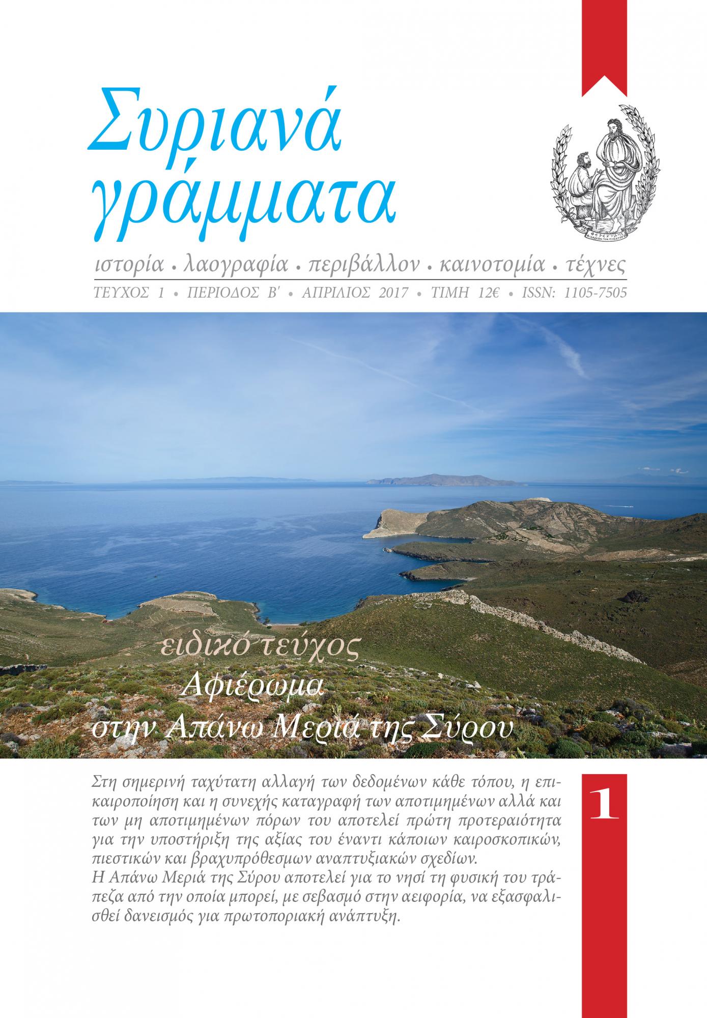 “Εγκώμιο” στην ιστορία, την κουλτούρα, τον πολιτισμό και το περιβάλλον της Σύρου αποτελεί η περιοδική έκδοση “Συριανά Γράμμα”, η οποία κι επανακυκλοφορεί μετά από 29 έτη “σιωπής”, φέροντας την ποιότητα της “σφραγίδας” του εκδότη της, κ. Δημήτρη Βαρθαλίτη, αλλά και αναδεικνύοντας παράλληλα, τη στιβαρή οντότητα της πρωτεύουσας των Κυκλάδων στον κάθε αναγνώστη.