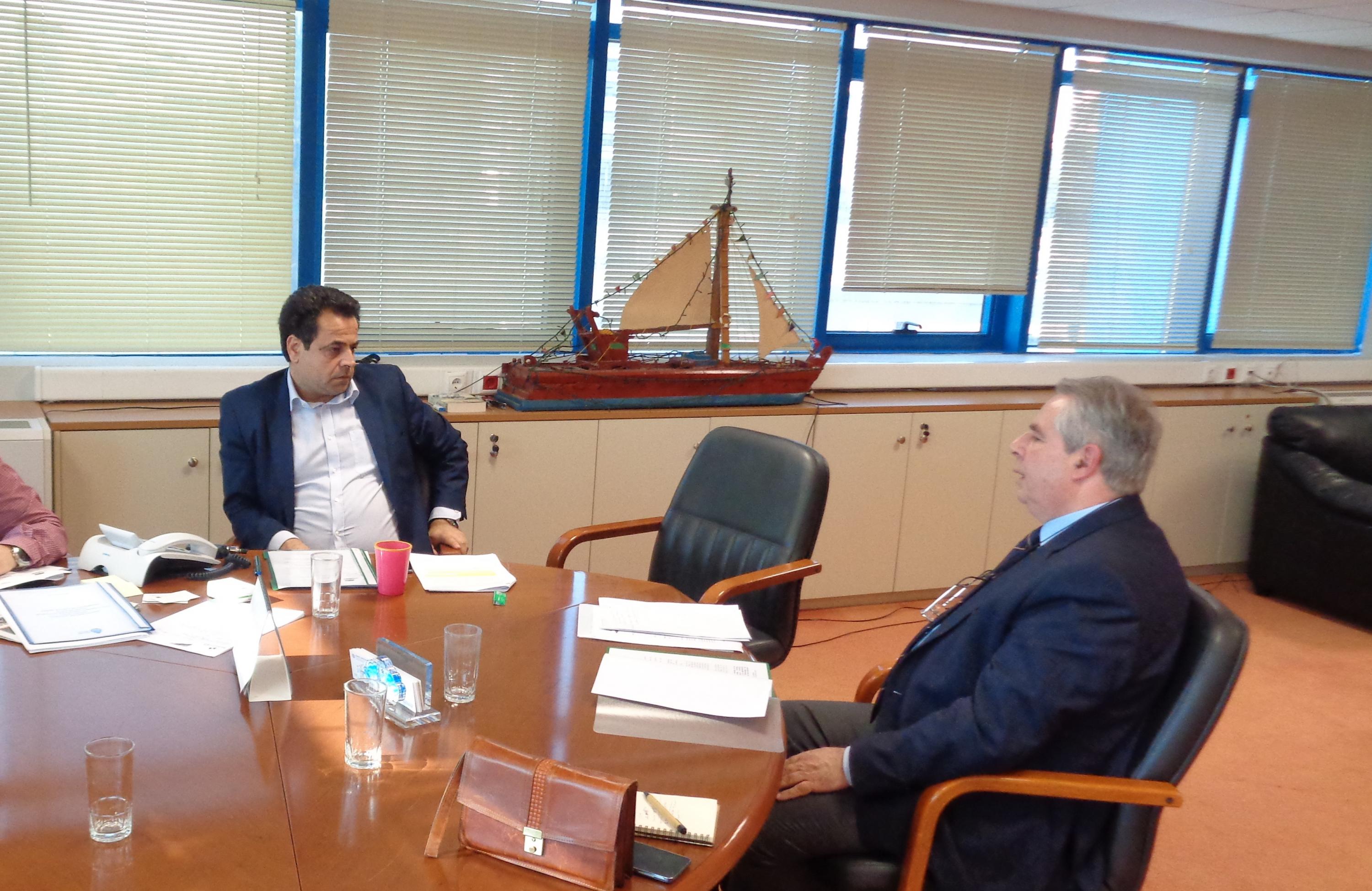 Συνάντηση με κύριο θέμα τις συνδυασμένες μεταφορές στα ελληνικά νησιά είχε τις 31/3 στο Υπουργείο Ναυτιλίας και Νησιωτικής Πολιτικής ο πρόεδρος του Ε.Ο.Α.Ε.Ν. Θράσος Καλογρίδης με τον Υφυπουργό Νεκτάριο Σαντορινιό.