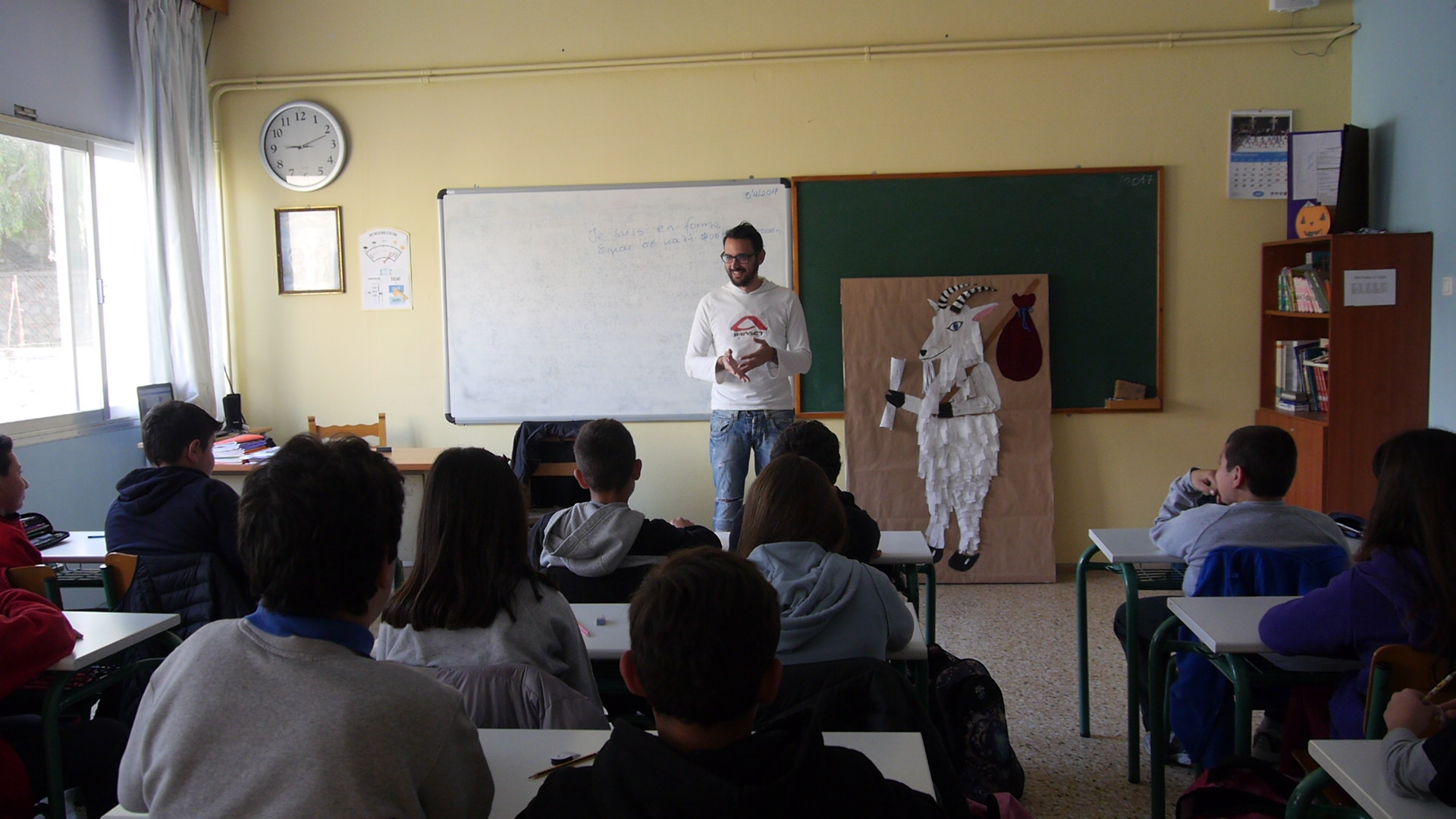 Κατά τη διάρκεια της συνάντησης, οι μαθητές είχαν επίσης την ευκαιρία να παρουσιάσουν το εικαστικό έργο τους που απέσπασε χάλκινο μετάλλιο στον φετινό Διαγωνισμό Γαλλοφωνίας. Το έργο τους ήταν βασισμένο στην «κατσίκα του κ. Σεγκάν», έναν μύθο για την ελευθερία, την ανεξαρτησία και τις συνέπειες της αποκοπής από το κοινωνικό σύνολο. «Τα παιδιά δούλεψαν πάρα πολύ γι’ αυτό και ανταμείφθηκαν για τον κόπο τους» δήλωσε η κ. Δεναξά, επισημαίνοντας πως αυτή ήταν η δεύτερη συνεχόμενη διάκριση του σχολείου στον συγκεκριμένο διαγωνισμό.