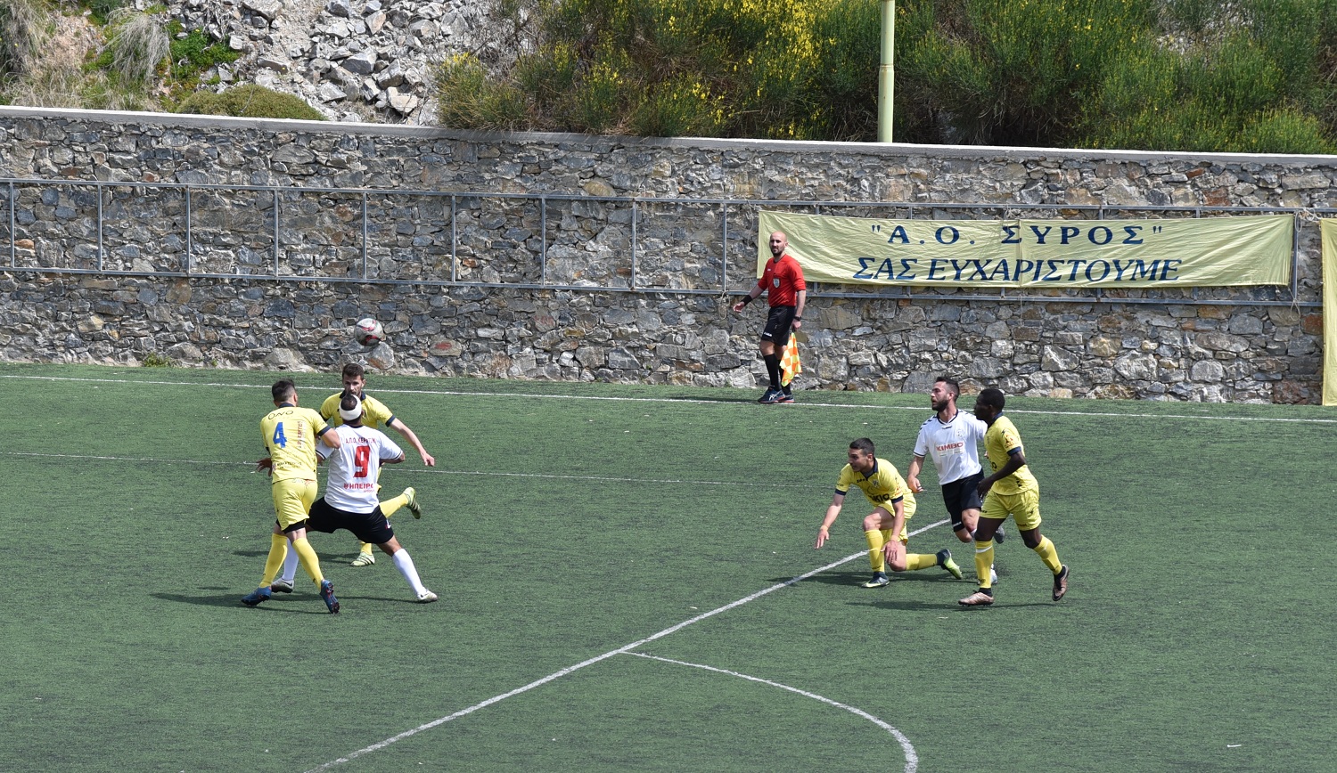 58' η πρώτη καλή στιγμή για την ομάδα της Σύρου στο ματς με το σουτ του Κώτσι έξω από την μεγάλη περιοχή. Η μπάλα δεν έκανε το χατίρι στον παίκτη του Α.Ο. Σύρου.