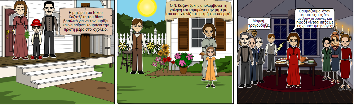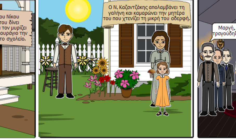 Στο πλαίσιο αυτό, οι 65 μαθητές της Α’ Τάξης έχουν ασκηθεί στη δημιουργική γραφή. «Για παράδειγμα, μελετήσαμε ένα κείμενο που ξεκινά με ένα γράμμα του πατέρα του Καζαντζάκη προς τον ίδιο και συνεχίζεται με την αφήγηση του συγγραφέα. Τα παιδιά, παίρνοντας τη θέση του Νίκου Καζαντζάκη του απάντησαν, δίνοντας μια δική τους εκδοχή στην ιστορία και μετατρέποντας την αφήγηση σε διάλογο και αντίστροφα», αναφέρει χαρακτηριστικά η υπεύθυνη. Επιπλέον, οι μαθητές εξοικειώθηκαν με τις νέες τεχνολογίες και δημιούργησαν δικά τους κόμικς, εμπνευσμένα από σκηνές διαφόρων λογοτεχνικών κειμένων, όπως η «Αναφορά στον Γκρέκο», με τα οποία ασχολήθηκαν εντός της τάξης.