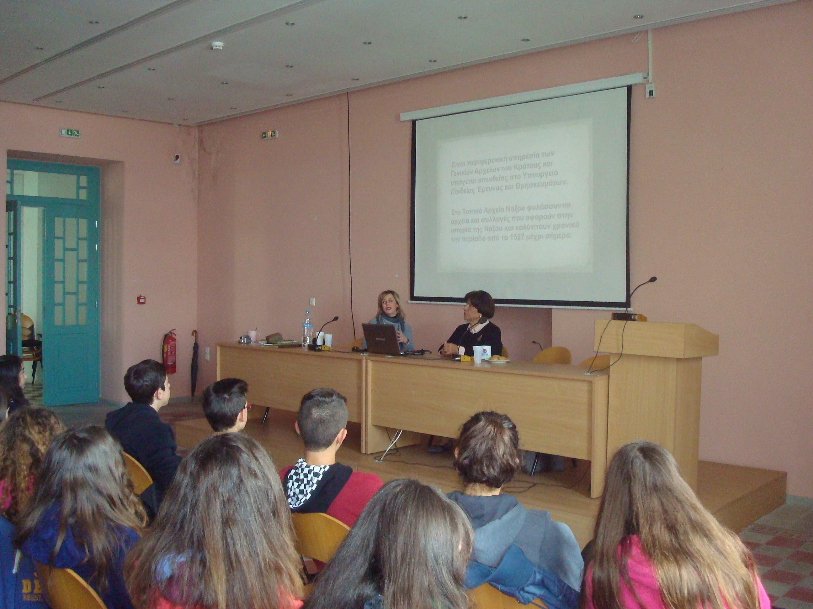 Μεταξύ άλλων, επισκέφτηκαν το Τοπικό Αρχείο Νάξου, μέσα στο Κάστρο, όπου μελέτησαν παλαιά έγγραφα σχετικά με τη Γαλλική Εμπορική Σχολή Τιμίου Σταυρού, στην οποία σπούδασε ο Καζαντζάκης τη διετία 1897-1899. Τα παιδιά βρήκαν τον κανονισμό της σχολής και τον σύγκριναν με τον σημερινό τρόπο λειτουργίας της. Την ομάδα συνόδευσε και η εκπρόσωπος της Διεθνούς Εταιρείας Φίλων Νίκου Καζαντζάκη στην Ελλάδα και ειδική μελετήτρια του έργου του, Αθηνά Βουγιούκα, η οποία επισκέφτηκε τα σχολεία της Νάξου και μίλησε στους μαθητές για γνωστές και άγνωστες πτυχές της ζωής του Έλληνα συγγραφέα.