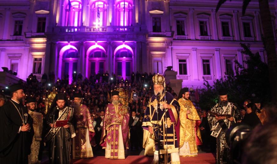 Ο Σεβασμιώτατος ευχαρίστησε τους επισκέπτες που επέλεξαν τη Σύρο για να εορτάσουν τα Πάθη και την Ανάσταση του Χριστού και να διακηρύξουν από αυτήν σε ολόκληρο τον κόσμο ότι, ο Θεός δεν πέθανε, αλλά ζει μέσα στους αιώνες και την ιστορία, δίνοντας στους ανθρώπους τον τρόπο να ξεφεύγουν από τα καθημερινά και τα στενάχωρα. Τους προέτρεψε μάλιστα να ψηλαφίσουν το νησί, να αναζητήσουν και να αγγίξουν τα διάσπαρτα δακτυλικά αποτυπώματα της ιστορίας, κληρονομιάς των προγόνων μας που πριν από 190 χρόνια δημιούργησαν έναν τόπο μοναδικό και ανεπανάληπτο, που φημίζεται για την ευγένεια και την αρχοντιά του.