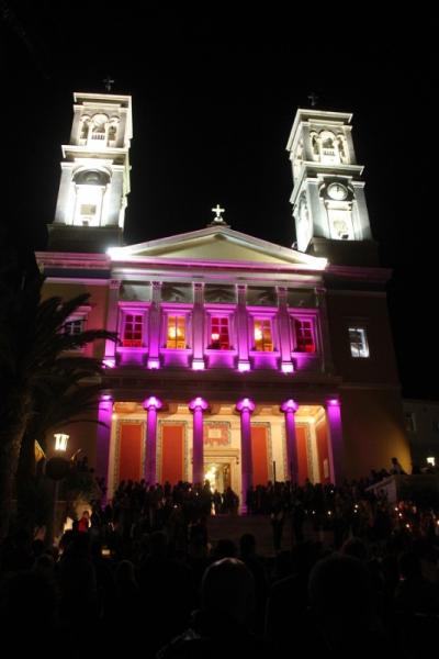 Η διάχυτη θρησκευτική κατάνυξη, η έντονη πνευματικότητα, οι βαθιά ριζωμένες τοπικές παραδόσεις και η περιρρέουσα αρχοντιά συνδιαμόρφωσαν τη μοναδική εμπειρία των εκατοντάδων επισκεπτών της Σύρου, οι οποίοι επέλεξαν φέτος να εορτάσουν το κοσμοχαρμόσυνο γεγονός της Ανάστασης στην πρωτεύουσα των Κυκλάδων.