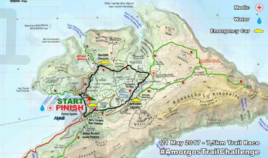 Την ευκαιρία να γνωρίσουν νέα τοπία, εικόνες, αλλά και να αντιμετωπίσουν καινούριες προκλήσεις θα έχουν οι αθλητές που θα συμμετέχουν στον αγώνα “Amorgos Trail Challenge” στις 21 Μαΐου 2017. Ένα τέτοιο γεγονός θα λάβει χώρα για πρώτη φορά στο νησί της Αμοργού και συγκεκριμένα στον οικισμό της Αιγιαλής. Το συνολικό μήκος της κύριας διαδρομής είναι 18 χιλιόμετρα με θετική υψομετρική ανάβαση 1020 μέτρα. Η σύσταση της διαδρομής αποτελείται από 80% παραδοσιακά μονοπάτια, 10% πλακόστρωση οικισμών, 7% χωματόδρομο και 3% άσφαλτο. Η εκκίνηση θα δοθεί στη Μονή Χοζοβιώτισσα, ενώ τερματισμός είναι στον Όρμο της Αιγιαλής, μπροστά από το Diving Center.