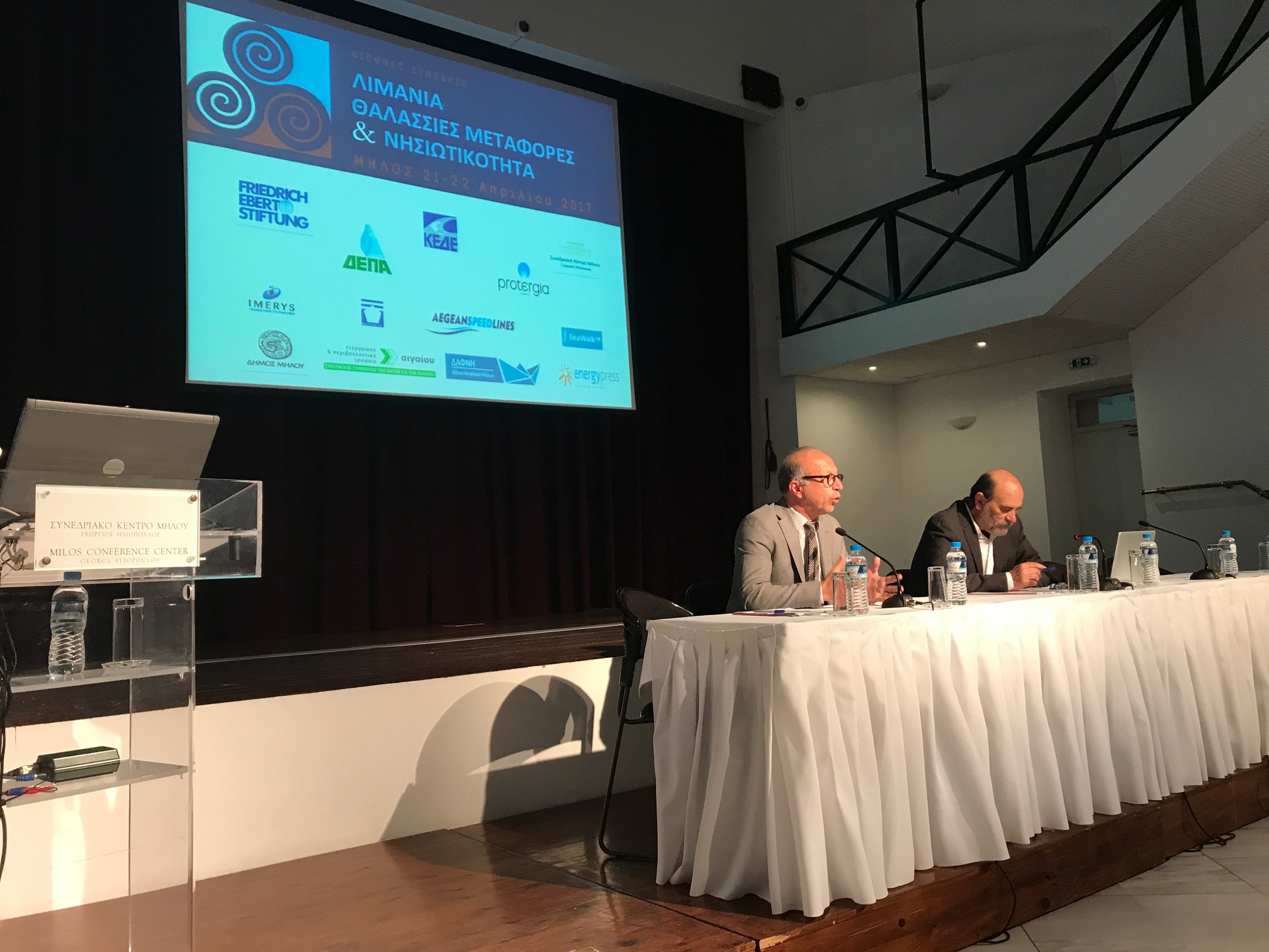 Στη Μήλο βρίσκεται από σήμερα ο Αντιπεριφερειάρχης Κυκλάδων κ. Γεώργιος Λεονταρίτης προκείμενου να συμμετάσχει στις εργασίες του 2ου διεθνούς συνεδρίου με τίτλο "Λιμάνια, Θαλάσσιες Μεταφορές & Νησιωτικότητα: Περιβάλλον, Καινοτομία, Επιχειρηματικότητα", που συνδιοργανώνεται από το Ενεργειακό & Περιβαλλοντικό Γραφείο Αιγαίου, το Δίκτυο Αειφόρων Νήσων ΔΑΦΝΗ, και το δημοσιογραφικό portal Energypress, υπό την αιγίδα του Δήμου Μήλου, του Λιμενικού Ταμείου Μήλου και της Κεντρικής Ένωσης Δήμων Ελλάδος (ΚΕΔΕ).