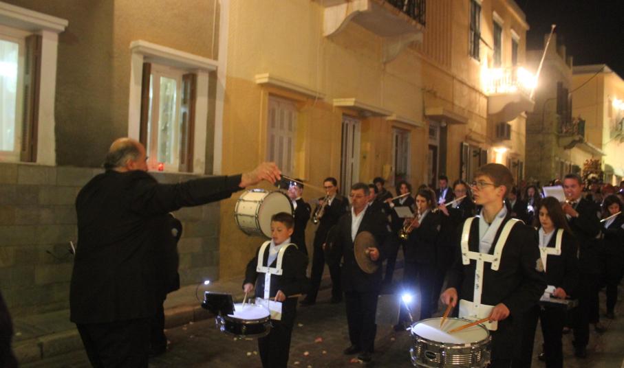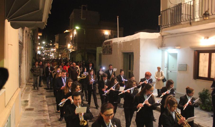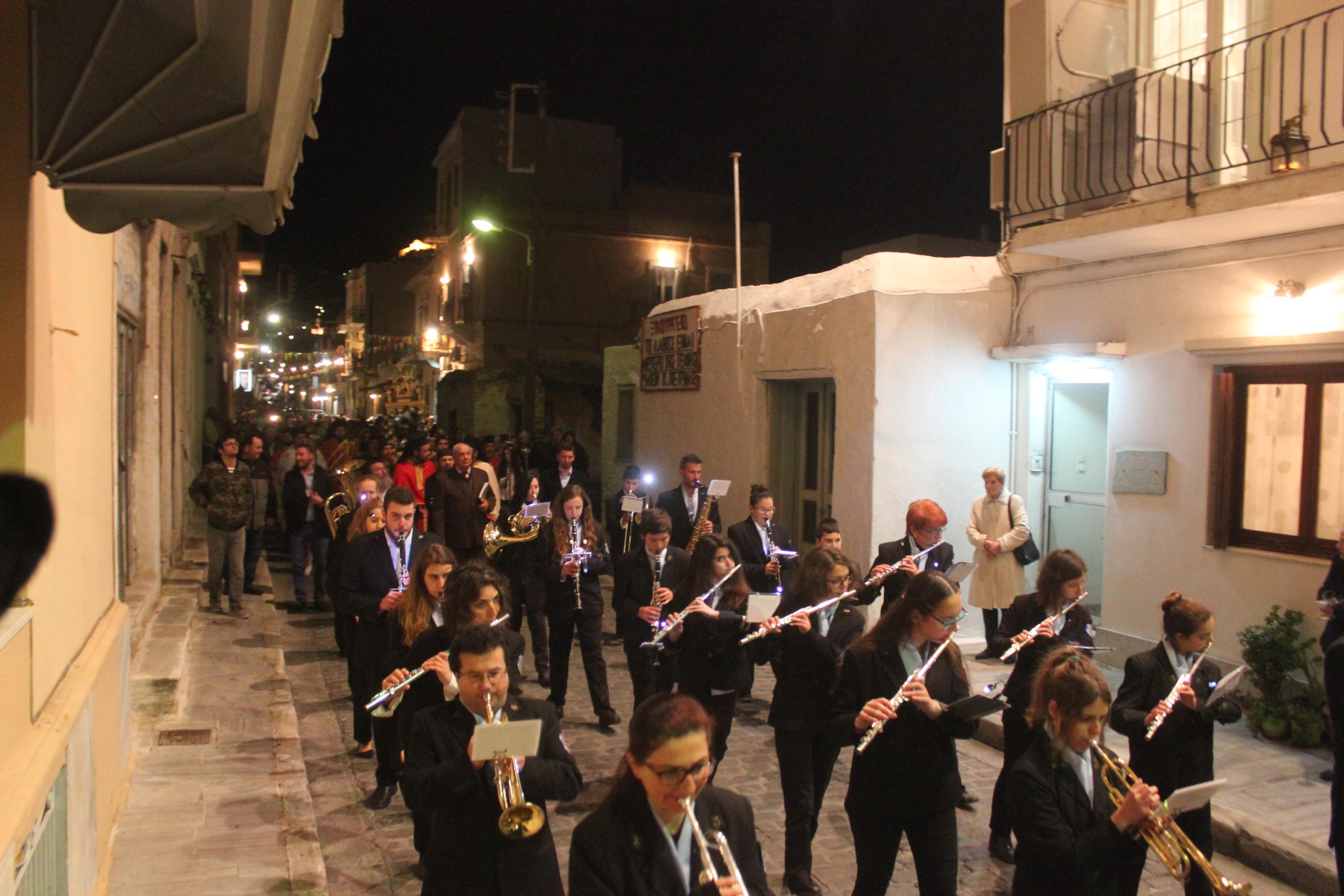 Τη λιτάνευση της ιεράς Εικόνας του Αγίου Γεωργίου, την οποία κάτοικοι των περιοχών της Νεάπολης και της πλατείας Ηρώων έραναν με ροδοπέταλα και λουλούδια από τα μπαλκόνια και τις πόρτες του, λάμπρυνε η Φιλαρμονική του Δήμου Σύρου – Ερμούπολης υπό τη διεύθυνση του μαέστρου Βύρωνα Γουδέλη.