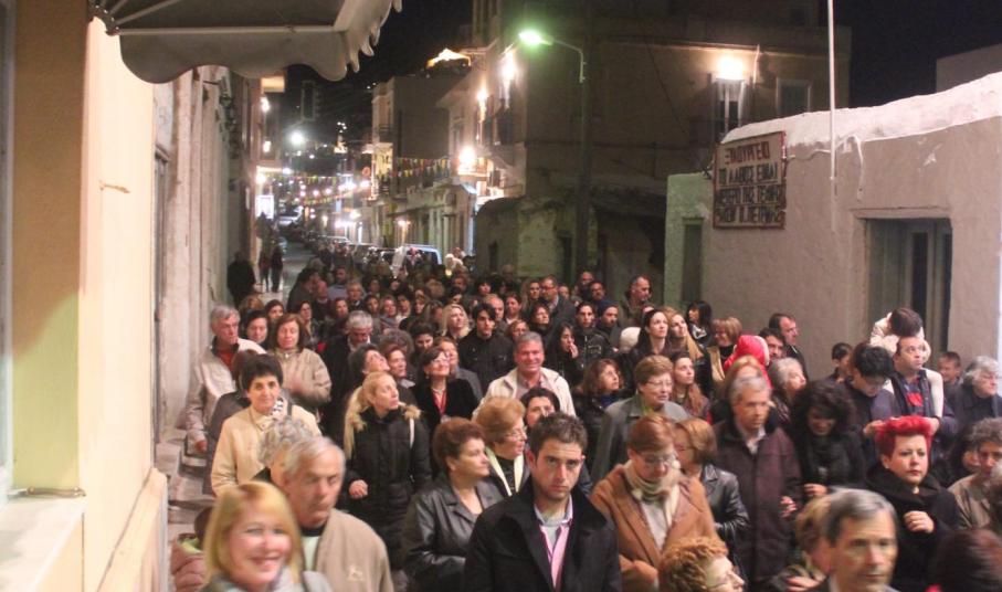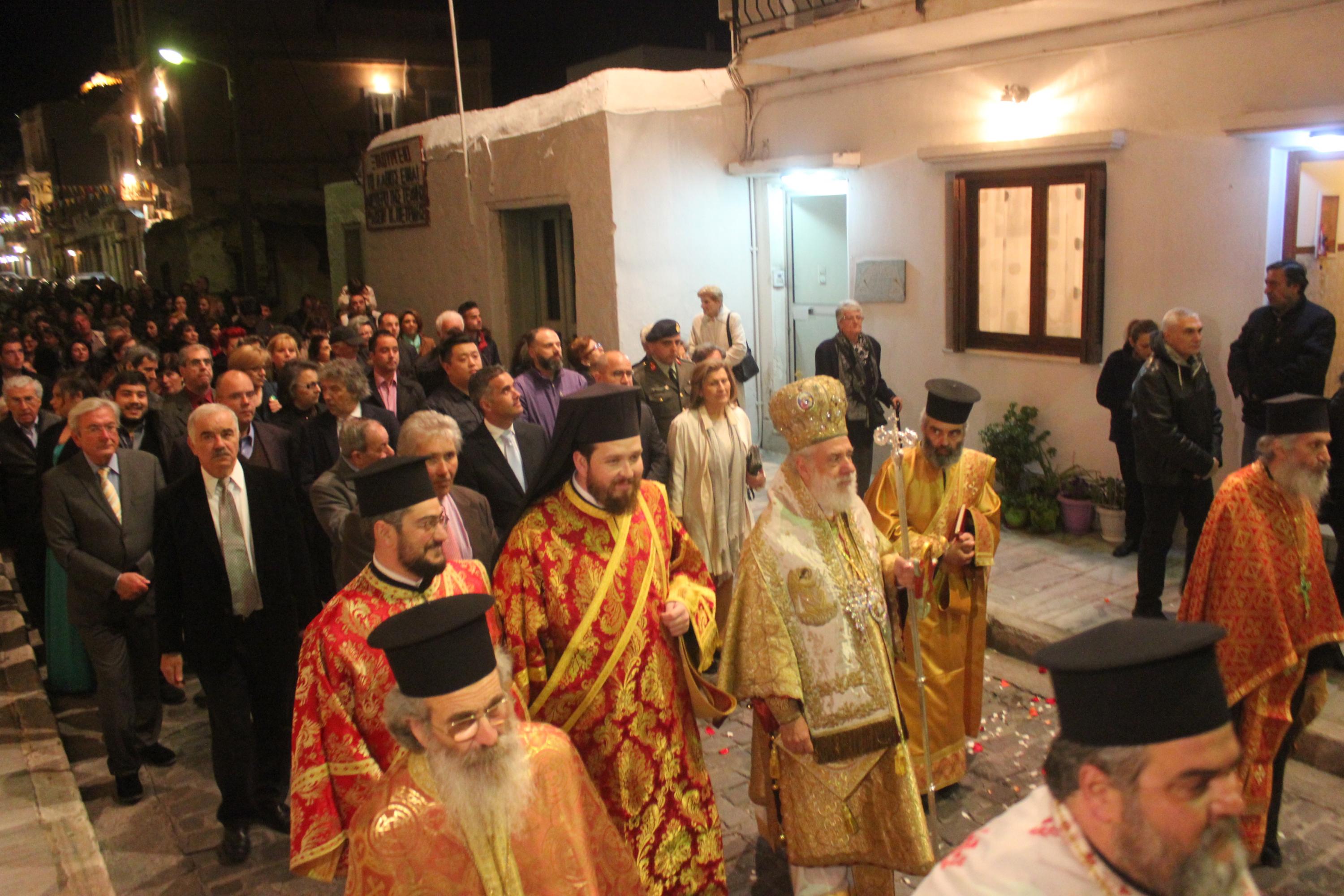 Παρουσία του Δημάρχου Σύρου – Ερμούπολης Γιώργου Μαραγκού, εκπροσώπων της τοπικής αυτοδιοίκησης α’ και β’ βαθμού, του Τάγματος Εθνοφυλακής Ερμούπολης και πλήθους πιστών τελέστηκε το απόγευμα του Σαββάτου ο Παναγυρικός Εσπερινός στον εορτάζοντα Ιερό Ναό του Αγίου Γεωργίου, που εγκαινίασε το 1839 ο Κυκλάδων Άνθιμος (Κοντούδης).