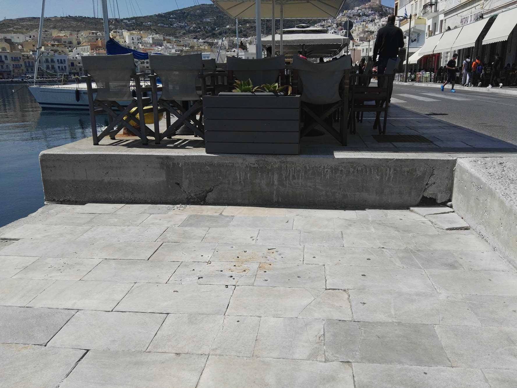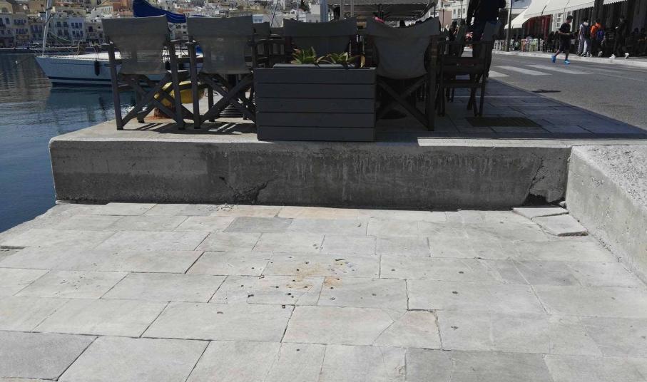 Ως εκ τούτου και μετά την ολοκλήρωση του έργου της ανάπλασης, ο χώρος του παλαιού λιμένα εξακολουθεί να διακρίνεται για τις φθορές και τις ζημιές που έχουν προκληθεί με το πέρασμα των ετών, καθώς υπήρξαν επί του μαρμάρινου δαπέδου τραπεζοκαθίσματα αλλά και σιδερένιες βάσεις ομπρελών που άφησαν “σημάδια”, αλλά επίσης χαρακτηρίζεται και από τη σταδιακή αποκόλληση μαρμάρων.