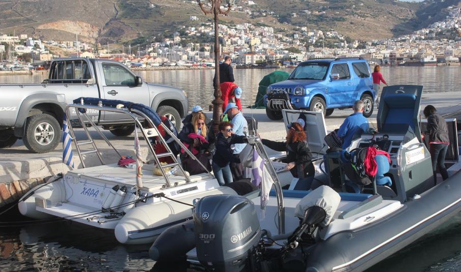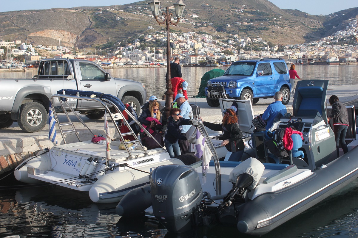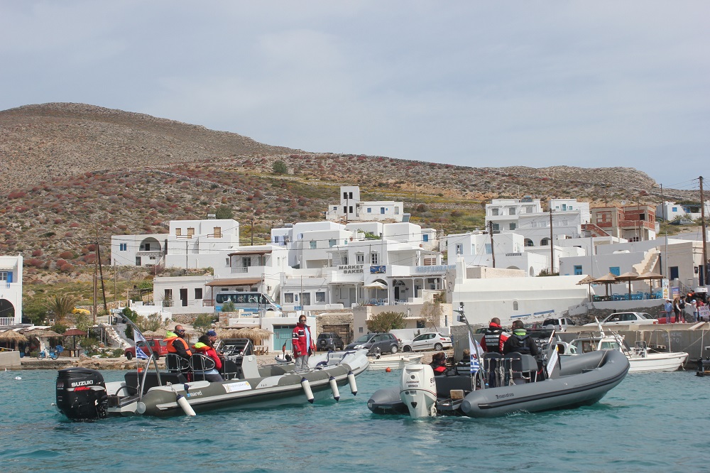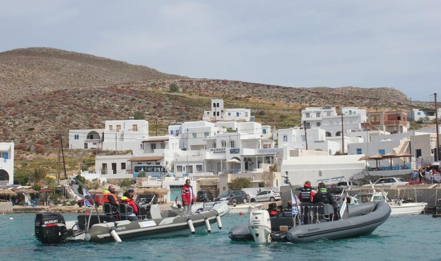 Θερμή υποδοχή επεφύλαξαν μικροί και μεγάλοι κάτοικοι της Φολεγάνδρου στα μέλη του Ομίλου Φουσκωτών και Ταχυπλόων Σκαφών Σύρου, που το πρωί του Σαββάτου «άναψε» τις μηχανές του για την καθιερωμένη ανοιξιάτικη αποστολή του στα καταγάλανα νερά του Αιγαίου.