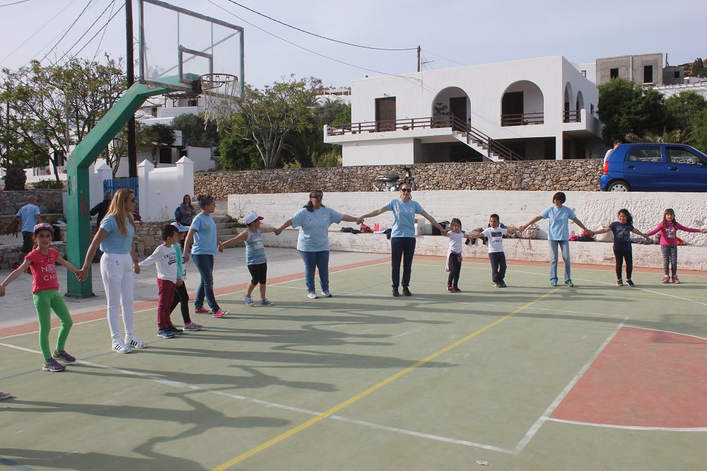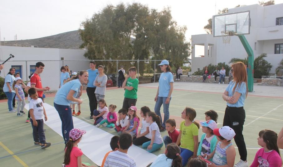 Λίγο αργότερα, στο Γήπεδο μπάσκετ, στο προαύλιο Γυμνασίου – Λυκείου Φολεγάνδρου πραγματοποιήθηκε η παιδαγωγική δράση «Το παράσημο της αγάπης» με υπεύθυνη την Χριστίνα Πρίντεζη. Περισσότερα από 35 παιδιά παρακολούθησαν μία θαλασσινή, διαδραστική ιστορία, βασισμένη στην προστασία της θάλασσας και τη σημασία της προσφοράς και της ομαδικότητας.