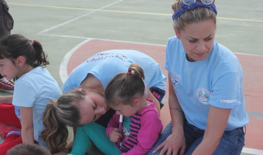 Στη συνέχεια, τα παιδιά με τη βοήθεια των παιδαγωγών έφτιαξαν τα παράσημα της αγάπης με διάφορα υλικά για τον ιππόκαμπο αλλά και για όλα τα πλάσματα που αγαπούν το βυθό, ενώ οι δράσεις ολοκληρώθηκαν με face painting από την make up artist Αγνή Θαλασσινού και μπαλονοκατασκευές.