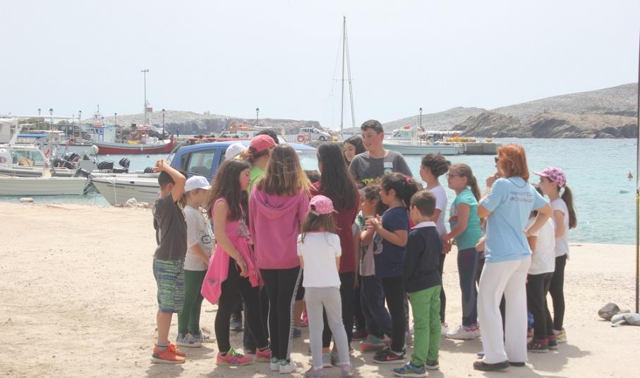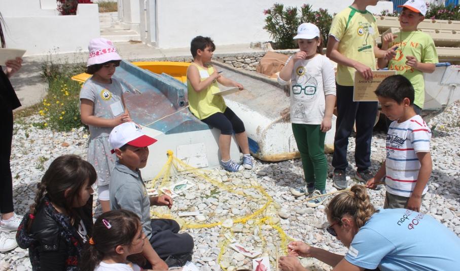 Λίγο αργότερα, στο Γήπεδο μπάσκετ, στο προαύλιο του Γυμνασίου – Λυκείου Φολεγάνδρου πραγματοποιήθηκε η παιδαγωγική δράση «Το παράσημο της αγάπης», στην οποία περισσότερα από 35 παιδιά παρακολούθησαν μία θαλασσινή, διαδραστική ιστορία, βασισμένη στην προστασία της θάλασσας και τη σημασία της προσφοράς και της ομαδικότητας.