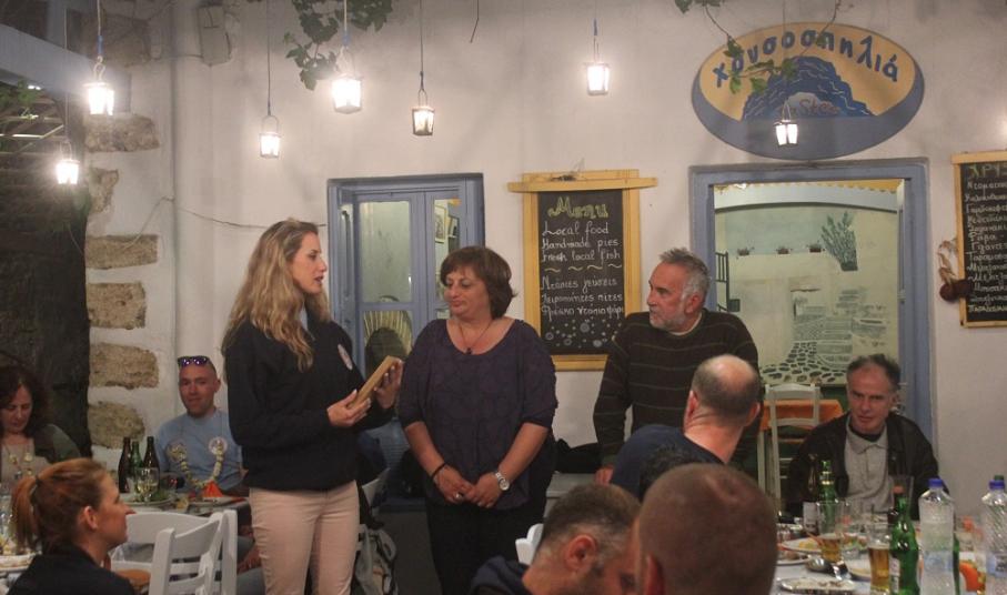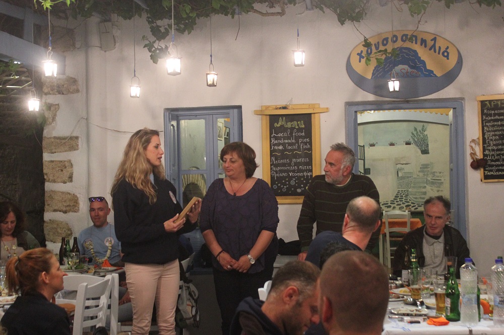 Σημειώνεται, ότι από την πρώτη κιόλας στιγμή, στο πλευρό του Ομίλου βρισκόταν η Αντιδήμαρχος Φολεγάνδρου Ευθαλία Παπαδοπούλου, συμβάλλοντας ενεργά στην ομαλή πραγματοποίηση των προγραμματισμένων δράσεων. Από την πλευρά του, ο Όμιλος ευχαρίστησε τόσο την κ. Παπαδοπούλου όσο και τον Δήμαρχο Φολεγάνδρου Λευτέρη Βενιό για την αγάπη και την εγκάρδια φιλοξενία τους, απονέμοντάς τους μία αναμνηστική πλακέτα. Τα μέλη της αποστολής είχαν μάλιστα την ευκαιρία να παρακολουθήσουν και το παραδοσιακό έθιμο του νησιού για την υποδοχή της Πρωτομαγιάς με τα «στολισμένα» γαϊδουράκια στα σοκάκια της Χώρας, συνοδεία μουσικών οργάνων και πλήθους κατοίκων, κάθε ηλικίας, που τραγουδούσαν με όλη τους την ψυχή.