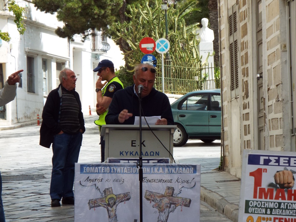 Παρόντες ήταν επίσης εκπρόσωποι της Τοπικής Αυτοδιοίκησης πρώτου και δεύτερου βαθμού, ενώ εκτός του Προέδρου του Εργατικού Κέντρου, μίλησαν, μεταξύ άλλων, επίσης ο πρόεδρος του Σωματείου Συνταξιούχων ΙΚΑ Κυκλάδων, ο πρόεδρος της Ένωσης Συνταξιούχων Ναυτικών Σύρου, ο πρόεδρος του Σωματείου Συνταξιούχων ΟΑΕΕ-ΤΕΒΕ-ΤΑΕ-ΤΣΑ Κυκλάδων, ο πρόεδρος του Σωματείου Εργαζομένων Οικοδόμων και Συναφών Επαγγελμάτων και εκπρόσωπος των Σύλλογος Δικαστικών Υπαλλήλων και Επιμελητών Κυκλάδων.