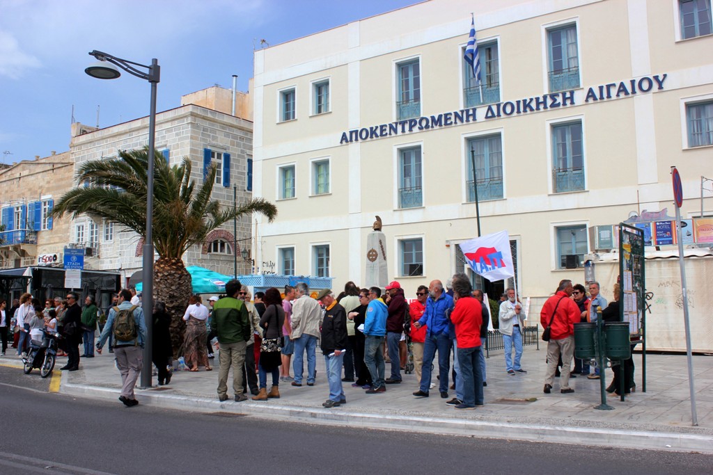 Τα μείζονα ζητήματα της κοινωνίας, τοπικά και όχι μόνο, έθιξαν εργαζόμενοι και συνταξιούχοι, που συμμετείχαν στις κινητοποιήσεις, οι οποίες “μοιράστηκαν” στα δύο, με μία συγκέντρωση διαμαρτυρίας να πραγματοποιείται από εργατικά σωματεία, έξω από το κτίριο της Αποκεντρωμένης Διοίκησης Αιγαίου και μία στο Εργατοϋπαλληλικό Κέντρο Κυκλάδων, ενώ πριν ενωθούν με τους εργαζομένους που είχαν συγκεντρωθεί στο ύψος της ΑΔΑ, ξεχωριστή συγκέντρωση διαμαρτυρίας πραγματοποίησαν και οι εργαζόμενοι του ναυπηγείου του Νεωρίου, λόγω των τελευταίων εξελίξεων.