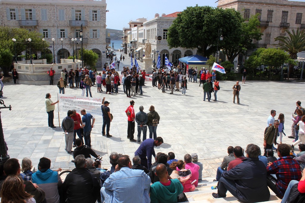 Η μικρή συμμετοχή, αλλά και η διάσπαση, ήταν τα κύρια χαρακτηριστικά των κινητοποιήσεων για την επέτειο της Εργατικής Πρωτομαγιάς, οι οποίες πραγματοποιήθηκαν το πρωί της Δευτέρας στη Σύρο.