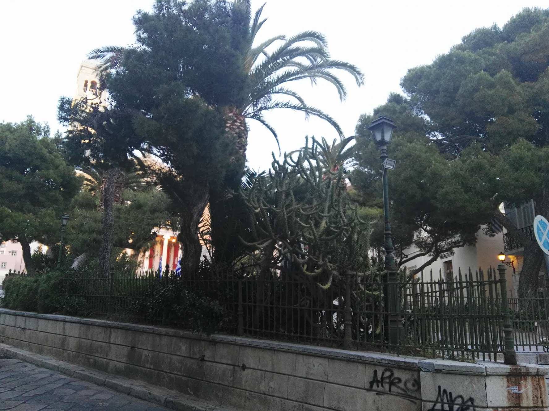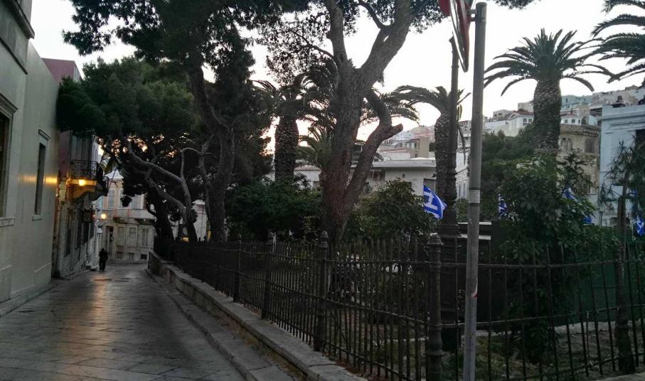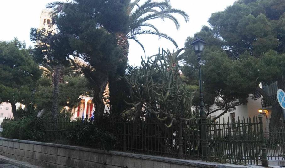 Εικόνα πλήρους συσκότισης παρατηρείται στο κηπάριο πλησίον του Ι.Ν. Αγίου Νικολάου στην Ερμούπολη κατά τις βραδινές ώρες, καθώς τα περισσότερα φωτιστικά, παραμένουν εκτός λειτουργίας, με ό,τι αυτό συνεπάγεται για ένα από τα κεντρικά σημεία της πόλης, από το οποίο διέρχονται αρκετοί πολίτες σχεδόν σε καθημερινή βάση, αλλά και αρκετοί επισκέπτες τη θερινή περίοδο.