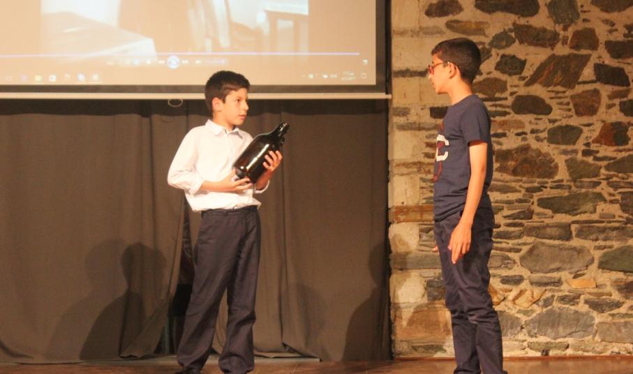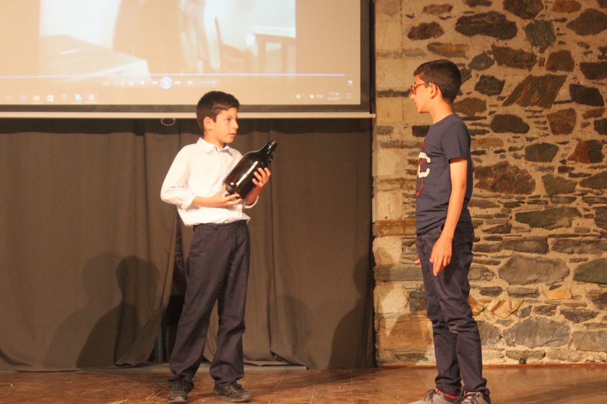 Στο δεύτερο μέρος της εκδήλωσης μαθήτριες της Ε’ Τάξης παρουσίασαν μία συρραφή κειμένων με σκέψεις και συναισθήματα των μαθητών για το Ρολόι του σχολείου τους με τίτλο «Το ρολόι θυμάται». Αμέσως μετά, η Δ’ Τάξη παρουσίασε το θεατρικό δρώμενο «Το ρολό» βασισμένο στη σπονδυλωτή ταινία «Το Κανόνι και τ' Αηδόνι» του 1968 , σε σκηνοθεσία Γιώργου και Ιάκωβου Καμπανέλλη. Η πρώτη ιστορία της ταινίας με τίτλο «Το Ρολόι» διαδραματίζεται στη Σύρο το 1943. Ο Ιταλός διοικητής του νησιού προσπαθεί μάταια να επιβληθεί στους κατοίκους που χλευάζουν τις ιταλικές δυνάμεις κατοχής και συχνά σκαρώνουν έξυπνες φάρσες σε βάρος τους. Το λάδι που δόθηκε για τη λειτουργία του Ρολογιού πέρασε από χέρι σε χέρια, στέρεψε κι η άδει μπουκάλα παραδόθηκε με πολύ γέλια στην Αντιδήμαρχο κ. Μενδρινού.