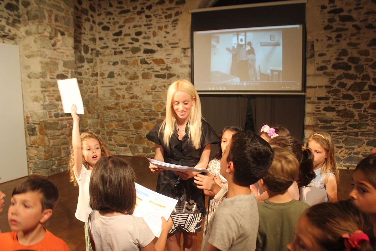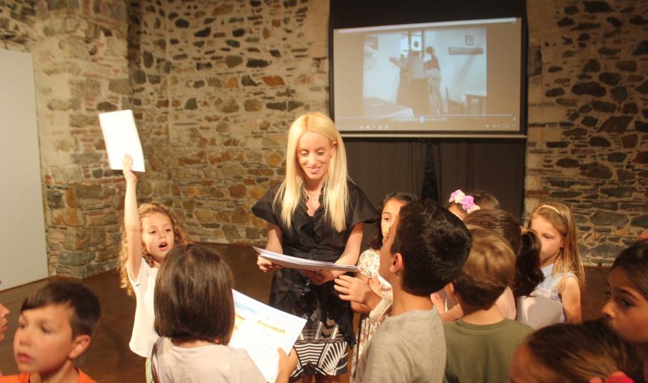 Στο τέλος της εκδήλωσης, η κ. Μενδρινού μοίρασε αναμνηστικά στους μαθητές του σχολείου.