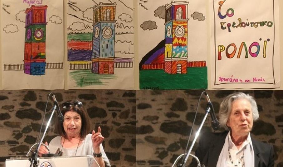 Την εκδήλωση παρουσίασε η εκπαιδευτικός του σχολείου Βέτα Αποστολίδου, υπογραμμίζοντας πως το εξαιρετικό αυτό αριστούργημα είναι, επί σειρά ετών, συνδεδεμένο με τους μαθητές. «Τα παιδιά κρύβονται πίσω από αυτό, παίζουν κυνηγητό γύρω του, απολαμβάνουν τη σκιά του και γενικά, το Ρολόι αποτελεί σημείο αναφοράς σε κάθε δραστηριότητά τους». Με την ευχή, η πρωτοβουλία του Συλλόγου Γονέων και Κηδεμόνων να αποτελέσει αφορμή για την επισκευή και επαναλειτουργία του Ρολογιού, η κ. Αποστολίδου έκλεισε με τη φράση της Αμερικανίδας Γυμνάστριας Bonnie Prudden «δεν μπορείς να γυρίσεις πίσω το ρολόι, μπορείς όμως να το κουρδίσεις ξανά».