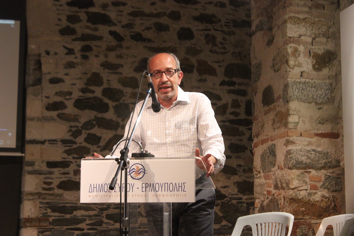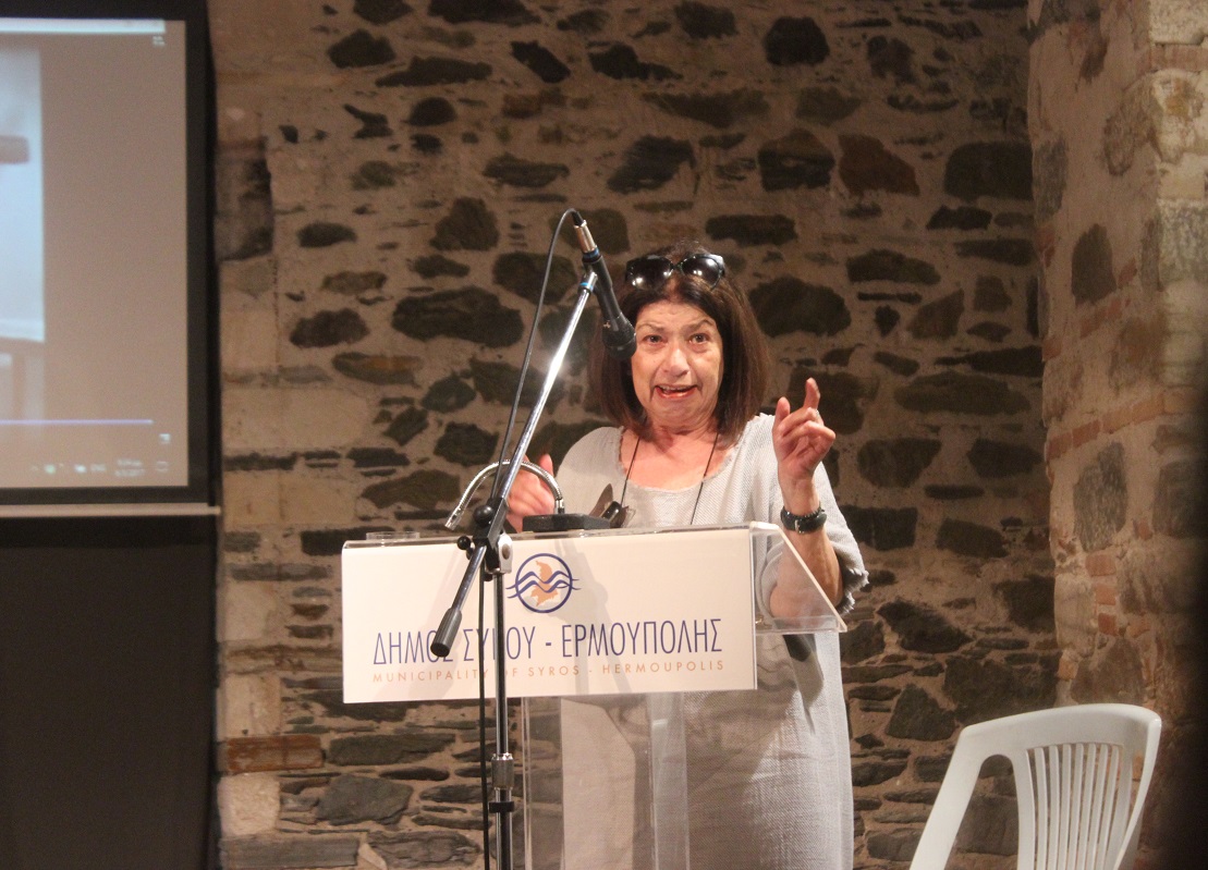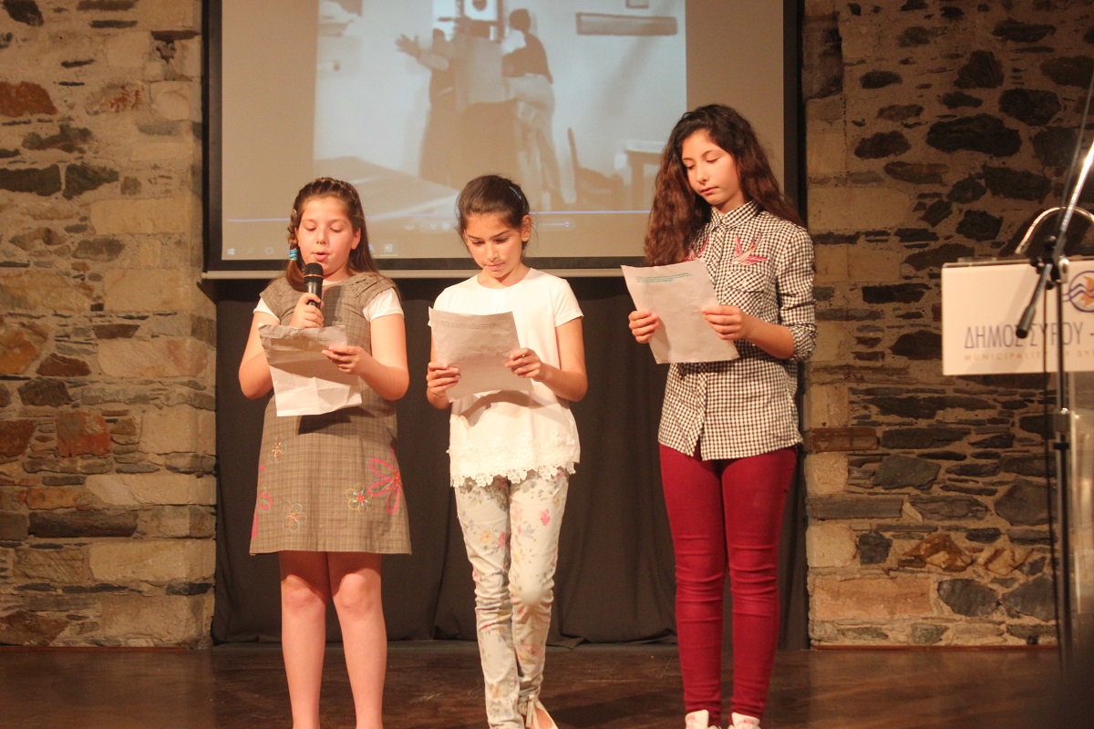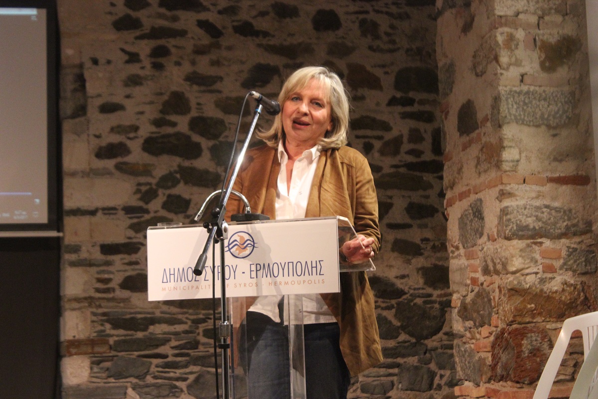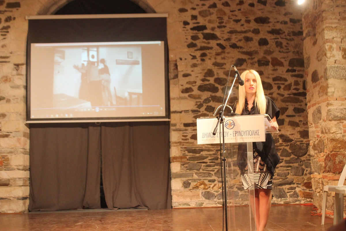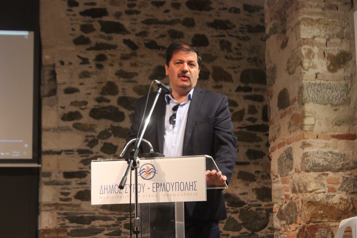Με ιδιαίτερη χαρά χαιρέτισε την εκδήλωση ο Διευθυντής του Σχολείου Χρήστος Βλαχόπουλος, σημειώνοντας πως, η πρωτοβουλία αυτή προβάλλει με σεβασμό και επιστημονική τεκμηρίωση την τοπική ιστορία, μέσα από την πλούσια κληρονομιά της Ερμούπολης. Πρόσθεσε μάλιστα πως οι εκπαιδευτικοί αναγνωρίζουν και εκτιμούν τα πλεονεκτήματα που προκύπτουν από τέτοιες αξιόλογες δράσεις, οι οποίες διαφωτίζουν και επιμορφώνουν εποικοδομητικά τον κάθε ενδιαφερόμενο. Με τη σειρά της, η Διευθύντρια Πρωτοβάθμιας Εκπαίδευσης Κυκλάδων, Μαρκέλλα Παραμυθιώτου δήλωσε πως η εκδήλωση της «οικογένειας» του 1ου Δημοτικού, αποδεικνύει ότι, τα σχολεία μπορούν να είναι ανοιχτά στην τοπική κοινωνία. «Δράσεις, όπως αυτή, δίνουν τη δυνατότητα στα παιδιά να μαθαίνουν τον πολιτιστικό θησαυρό του τόπου και την παράδοσή μας, αβίαστα, δημιουργικά», ανέφερε χαρακτηριστικά.