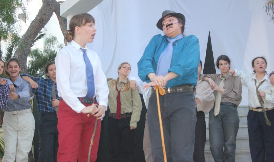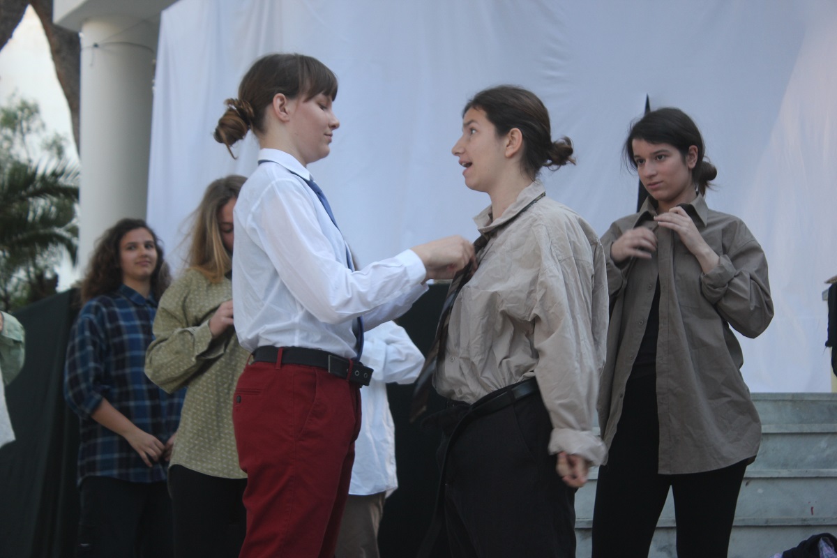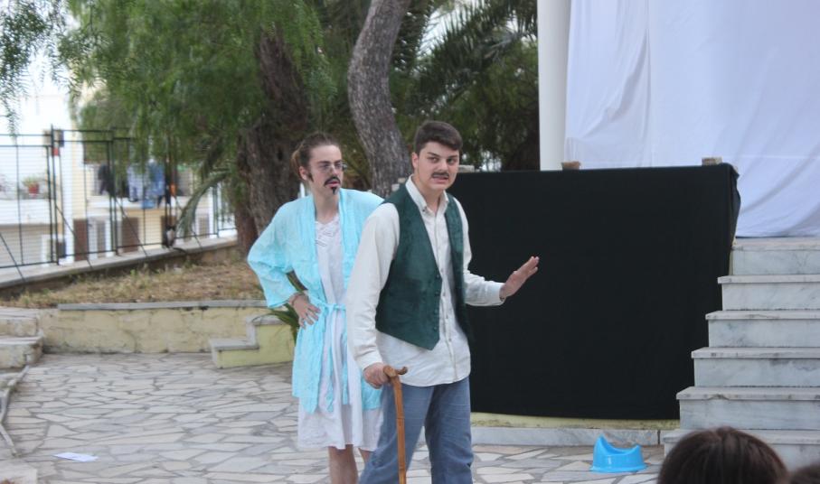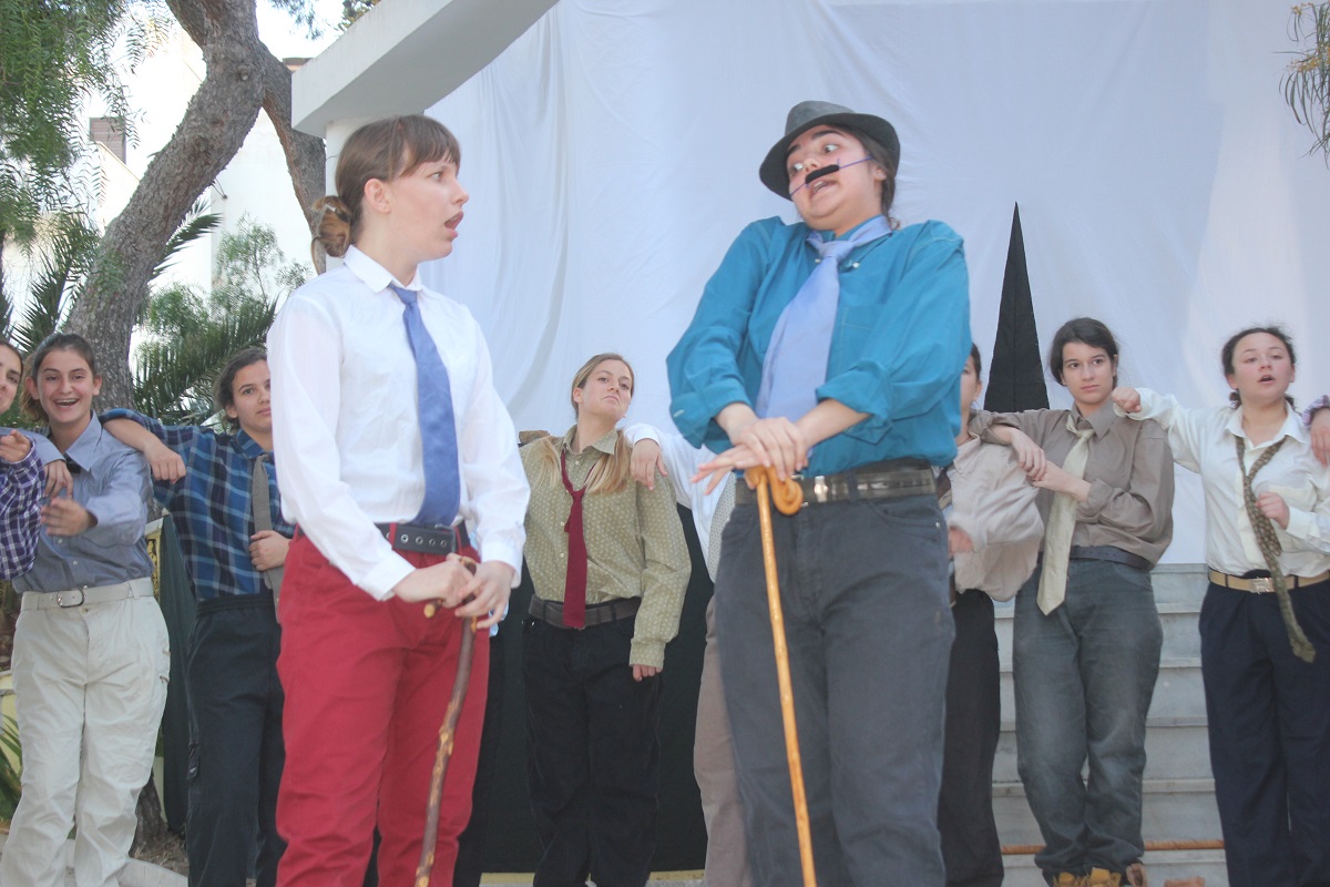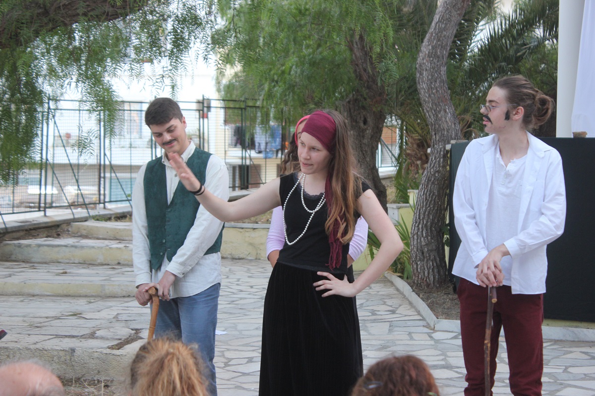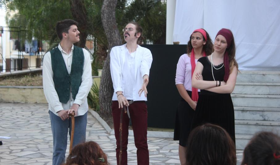 Στην παράσταση έπαιξαν οι μαθητές: Σελεστίνη Συνοδινού, Μαριαλένα Τσαντήλα, Αντώνης Κουβαλάκης, Νικήτας Χρήστου, Άννα Κορωναίου, Μαριαλένα Τσαντήλα, Αντωνία Χαλαβαζή, Ναυσικά Γκοτζαμάνη, Αντωνία Ρηγούτσου, Μαρία Στεφάνου, Μίνα Κατσάβη, Κατερίνα Μπούρα, Μυρσίνη Τζαβάρα, Ελπίδα Ξαγοράρη, Κατερίνα Μπούρα, Έλενα Μπραζόλα – Μπαχαράκη & Ελίζα Καζόλη. Κορυφαίες στον χορό η Μυρσίνη Τζαβάρα και η Ελπίδα Κόνταρη. Το έργο παρουσιάστηκε με δύο διαφορετικές διανομές.