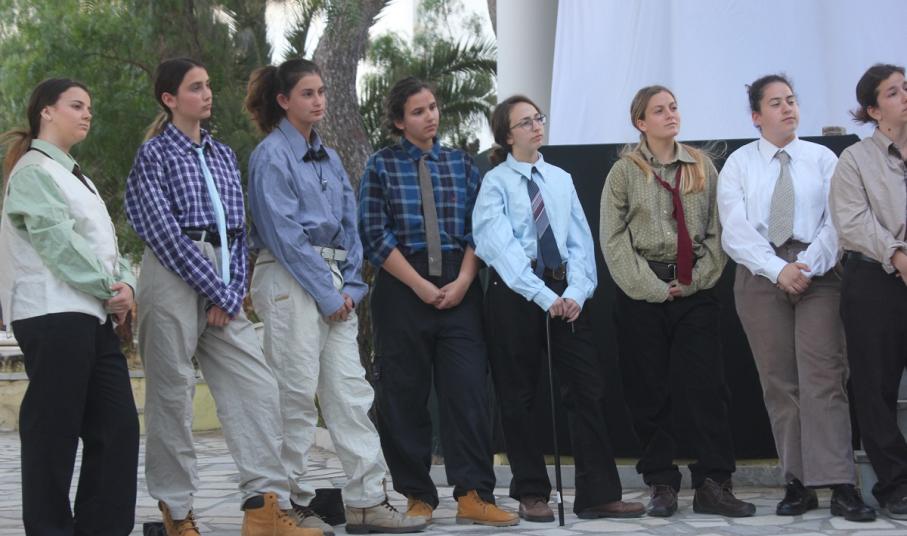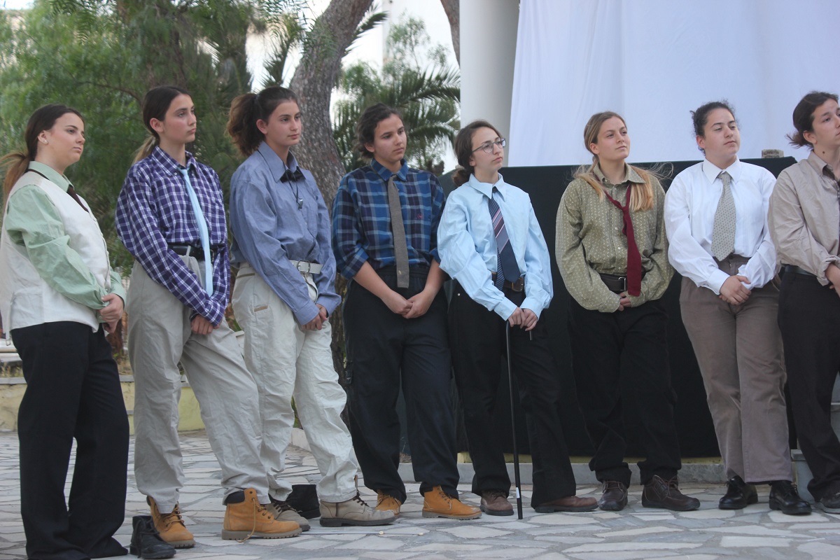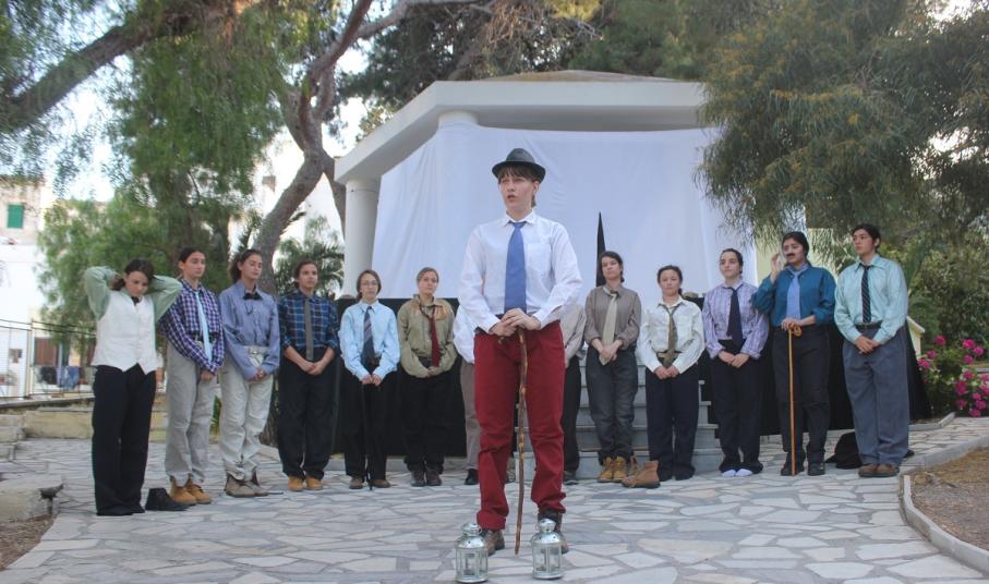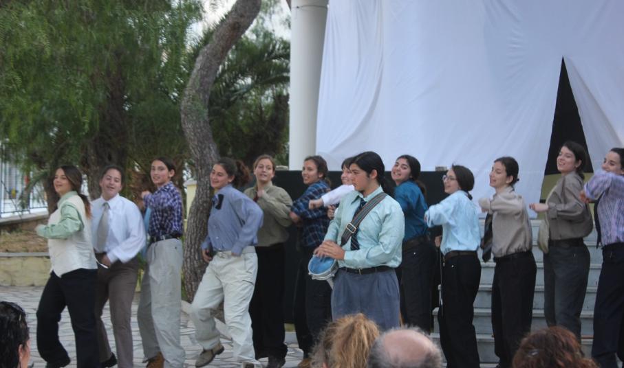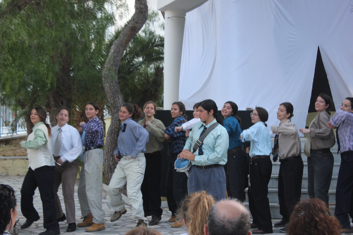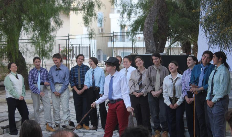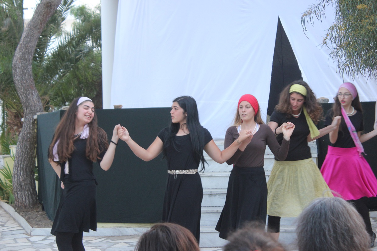 Στην παράσταση έπαιξαν οι μαθητές: Σελεστίνη Συνοδινού, Μαριαλένα Τσαντήλα, Αντώνης Κουβαλάκης, Νικήτας Χρήστου, Άννα Κορωναίου, Μαριαλένα Τσαντήλα, Αντωνία Χαλαβαζή, Ναυσικά Γκοτζαμάνη, Αντωνία Ρηγούτσου, Μαρία Στεφάνου, Μίνα Κατσάβη, Κατερίνα Μπούρα, Μυρσίνη Τζαβάρα, Ελπίδα Ξαγοράρη, Κατερίνα Μπούρα, Έλενα Μπραζόλα – Μπαχαράκη & Ελίζα Καζόλη. Κορυφαίες στον χορό η Μυρσίνη Τζαβάρα και η Ελπίδα Κόνταρη. Το έργο παρουσιάστηκε με δύο διαφορετικές διανομές.