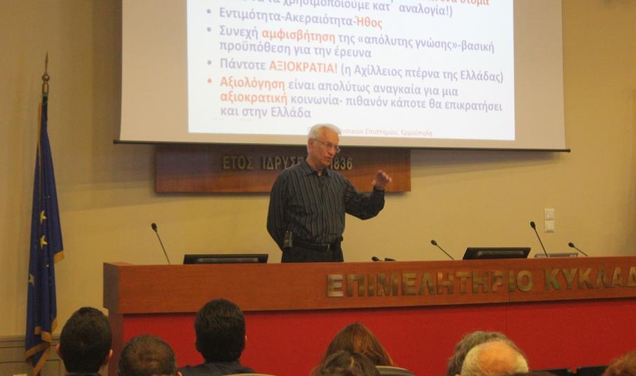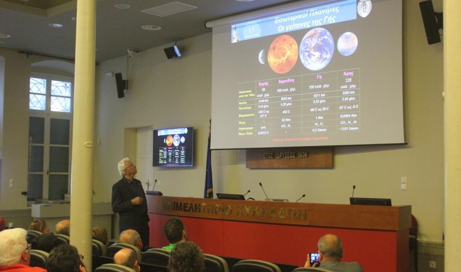 Με μία ενδιαφέρουσα ομιλία του ακαδημαϊκού-διαστημικού επιστήμονα Δρ. Σταμάτη Κριμιζή, ολοκληρώθηκαν το βράδυ του Σαββάτου, στη συνεδριακή αίθουσα του Επιμελητηρίου Κυκλάδων, οι εργασίες του 2ου Πανηγυριού Φυσικών Επιστημών στη Σύρο.
