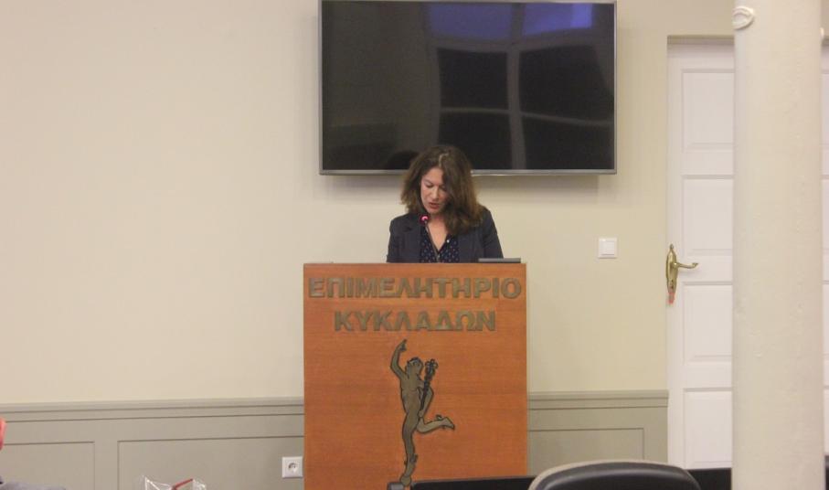 Στον χαιρετισμό της, η αναπληρώτρια του Περιφερειακού Διευθυντή Εκπαίδευσης Νοτίου Αιγαίου Τσαμπίκα Καράκιζα αναφέρθηκε στους μύθους που υπάρχουν γύρω από το Διάστημα. Είναι δύσκολο να διαλύσουμε αυτούς τους πλασματικούς κόσμους και να αναδείξουμε την πραγματική διάσταση;