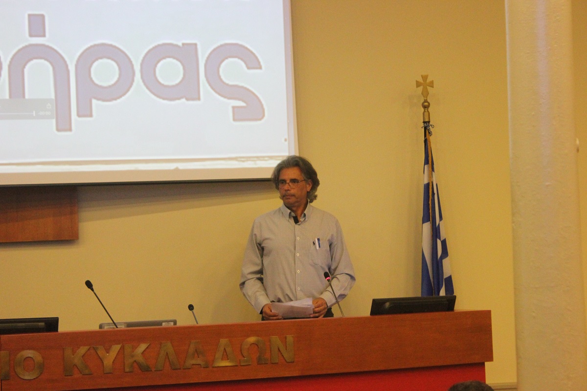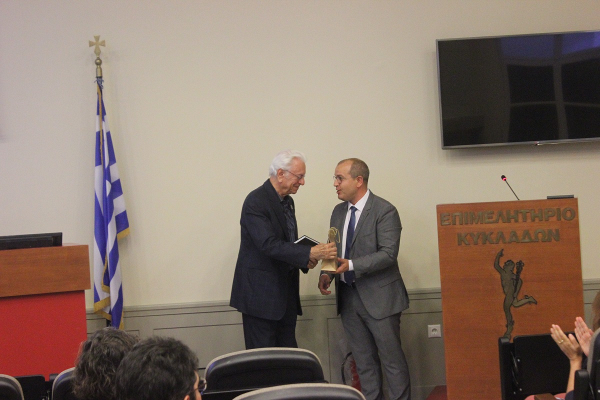 Τον Δήμο εκπροσώπησε ο πρόεδρος του Δημοτικού Συμβουλίου, Γιώργος Δούναβης, ο οποίος ευχαρίστησε τον κ. Κριμιζή και του απένειμε αναμνηστικά δώρα από τη Σύρο.