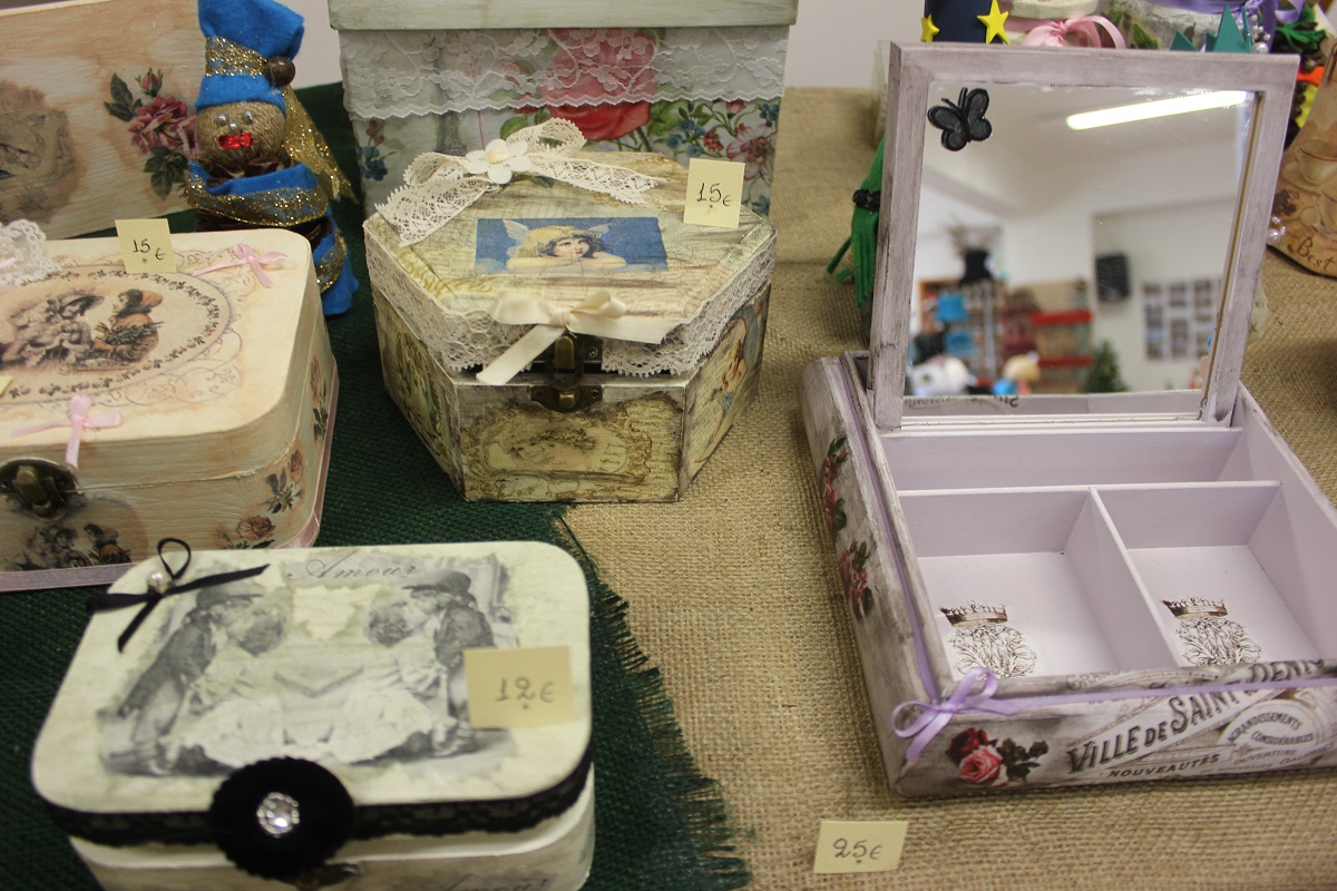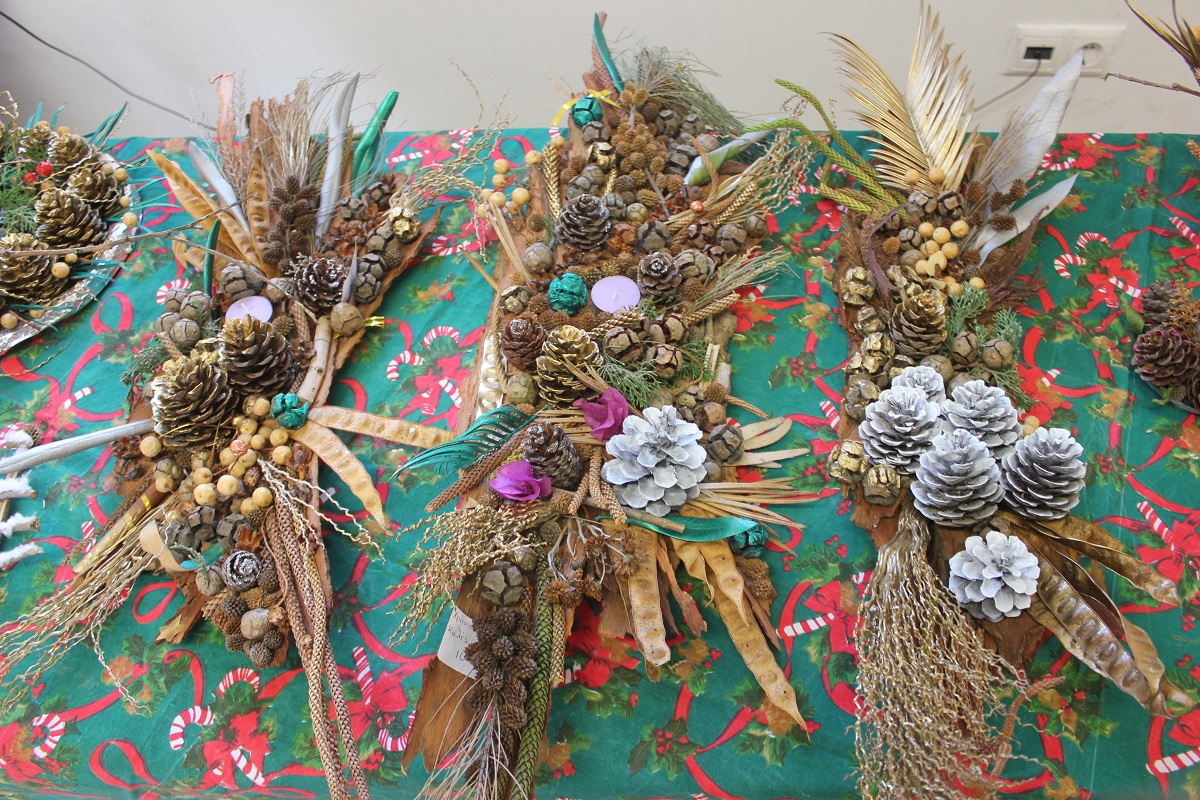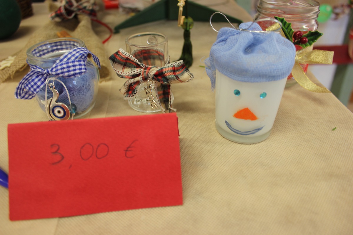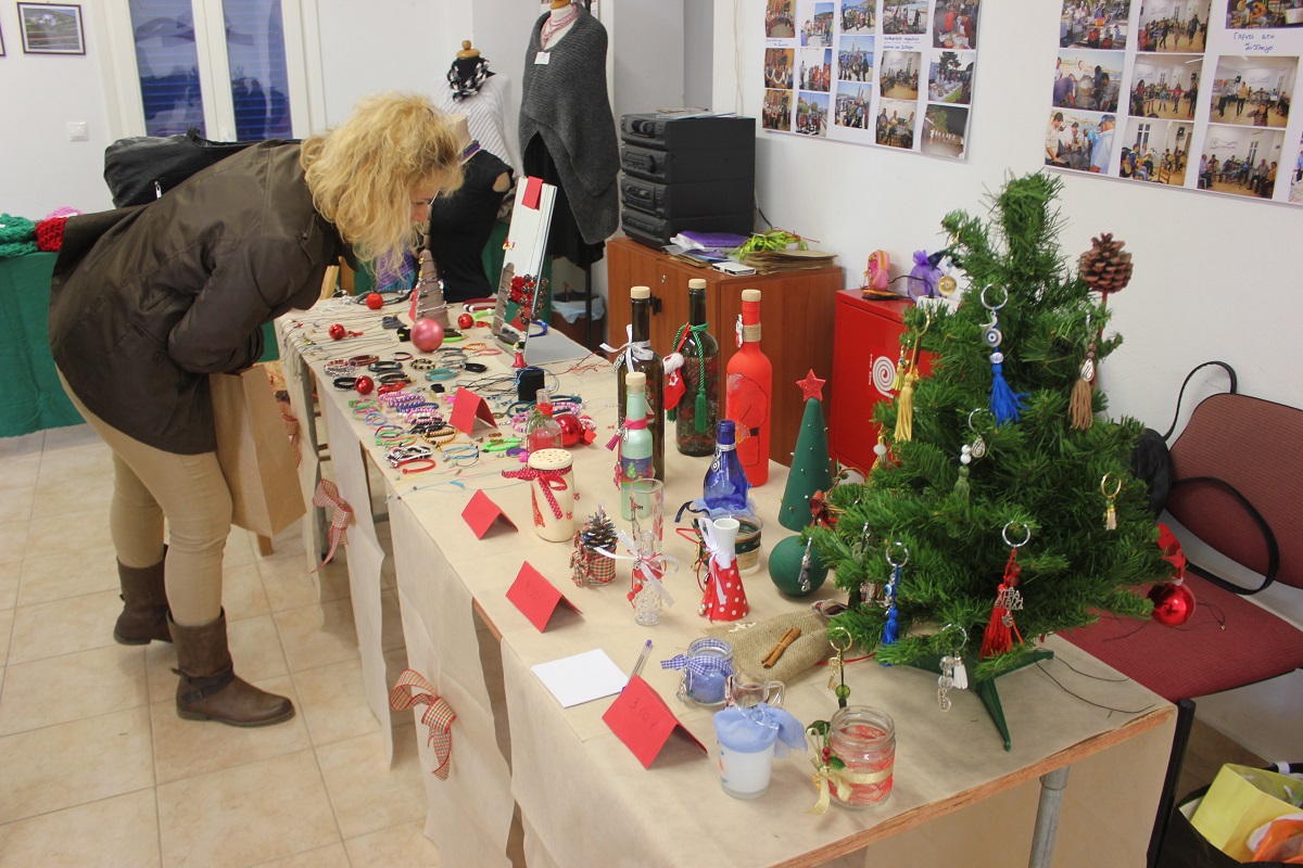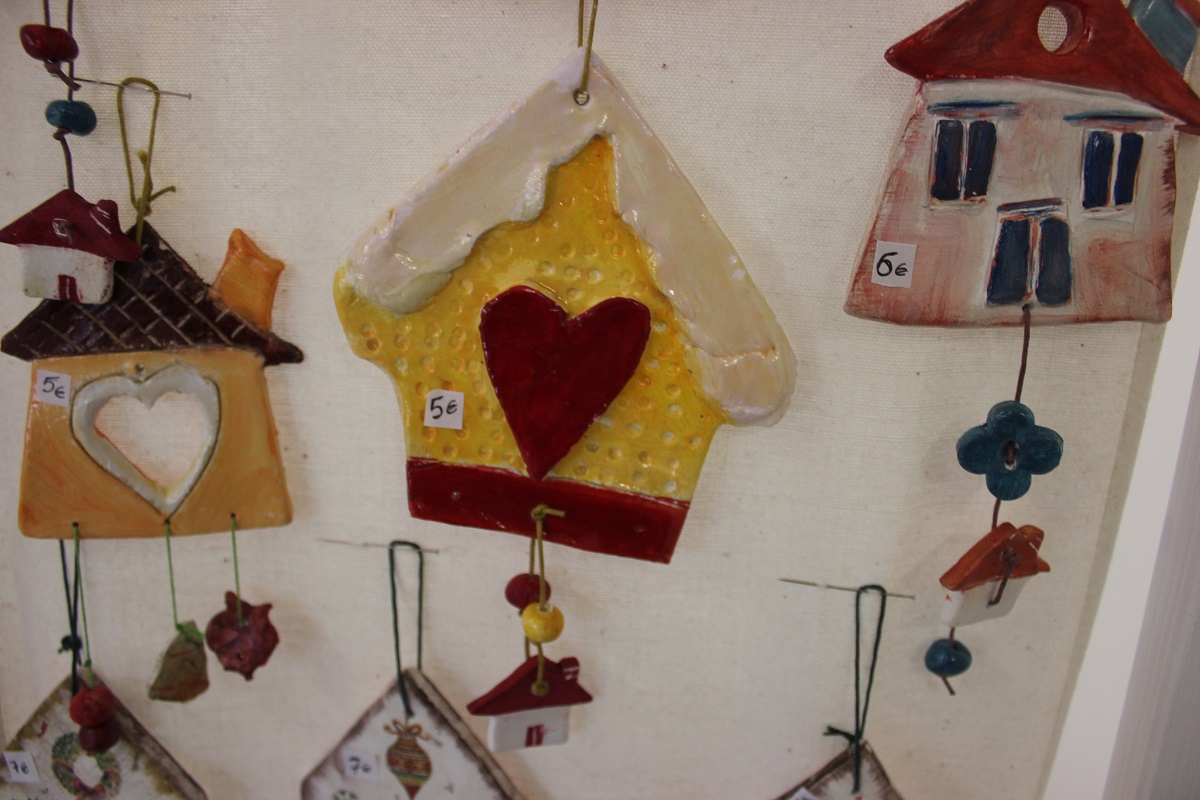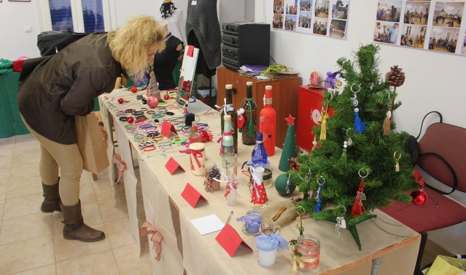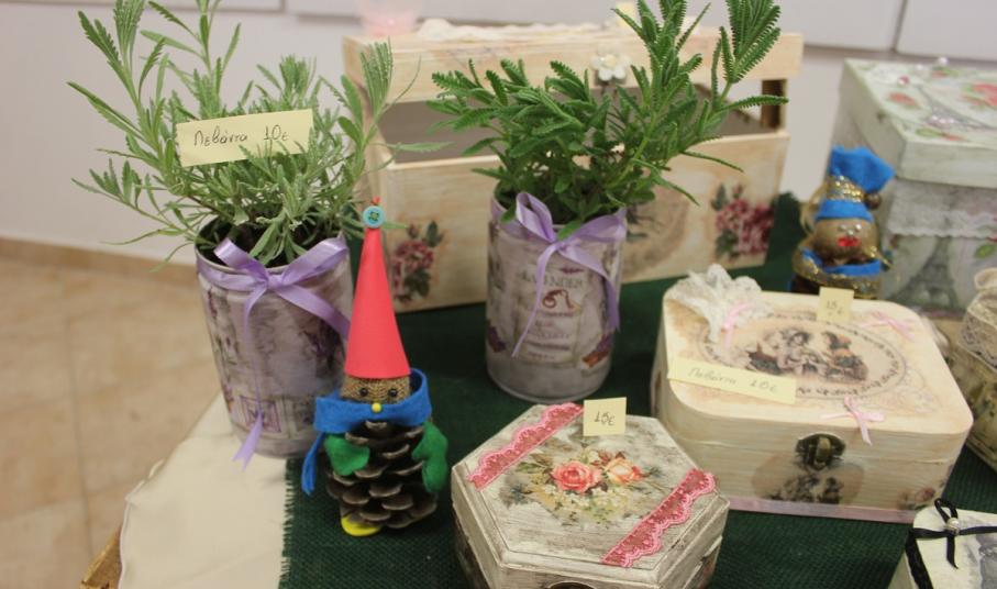 Οι επισκέπτες του έχουν την ευκαιρία να βρουν χριστουγεννιάτικα στολίδια, κοσμήματα από ασήμι και φερμουάρ, πλεκτά είδη (παιδικά σκουφάκια, τσάντες, μπολερό και μπλούζες), διακοσμητικά αντικείμενα από πηλό, ντεκουπάζ (μπουκάλια και ξύλινα κουτιά) και εορταστικά στεφάνια .