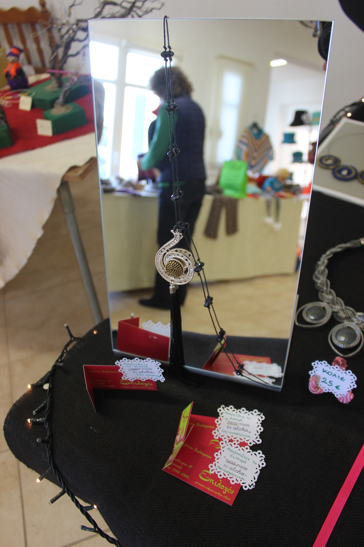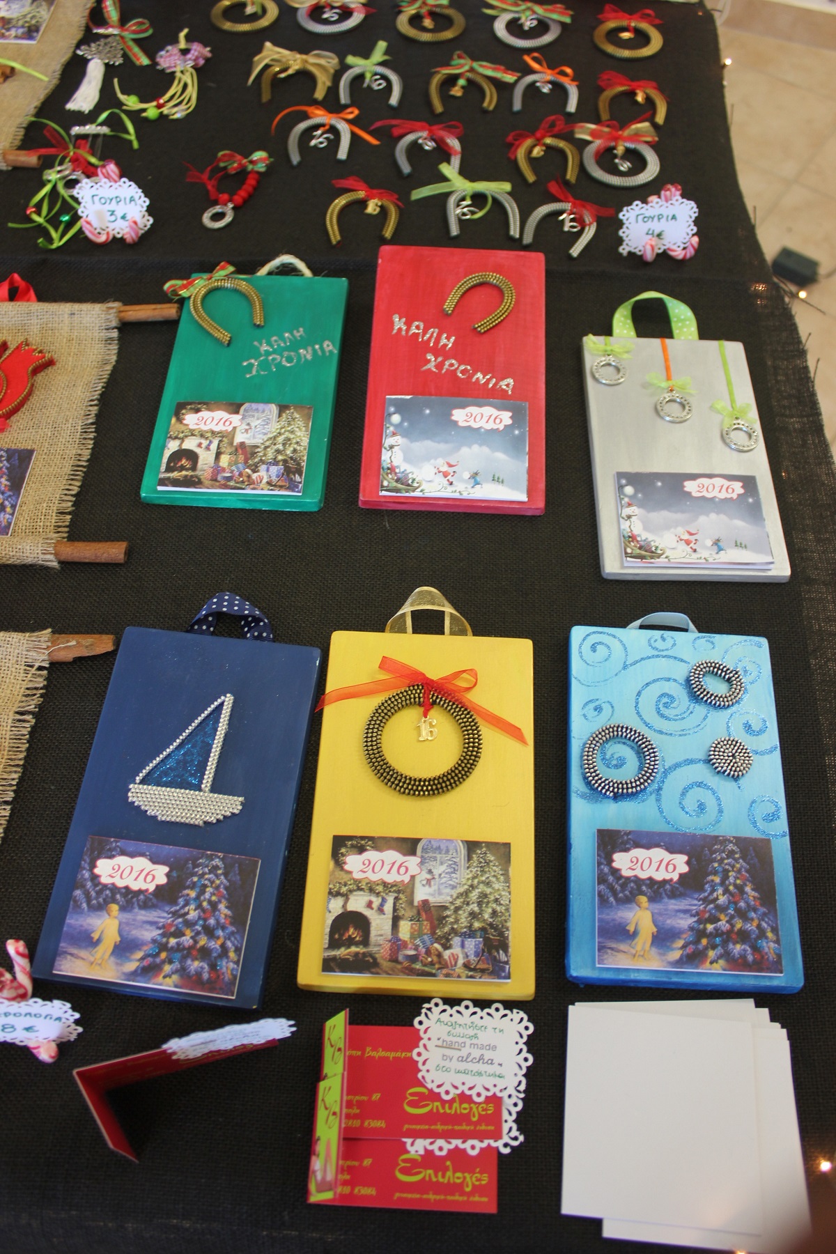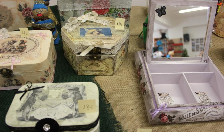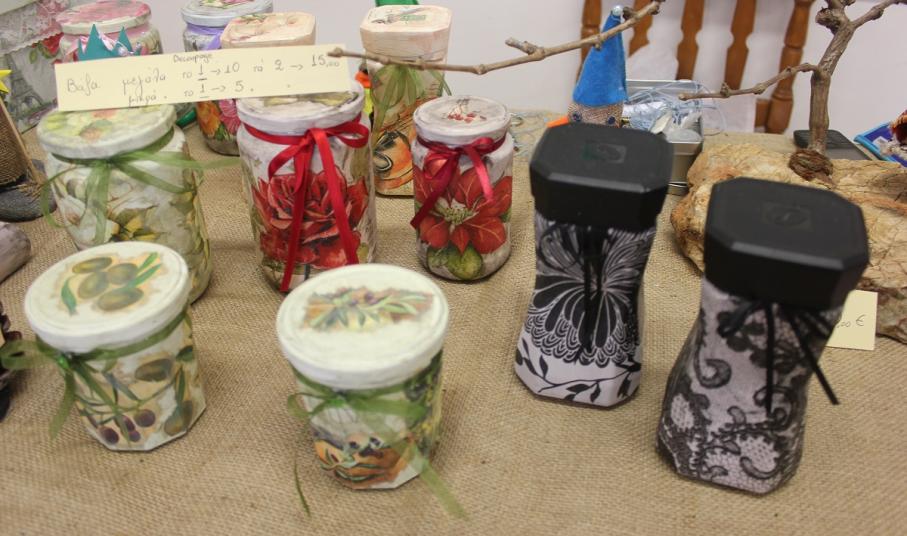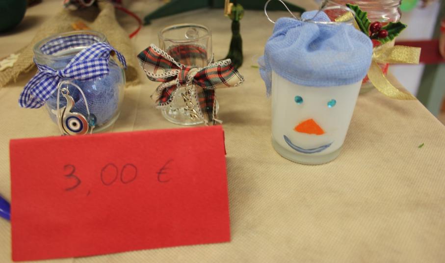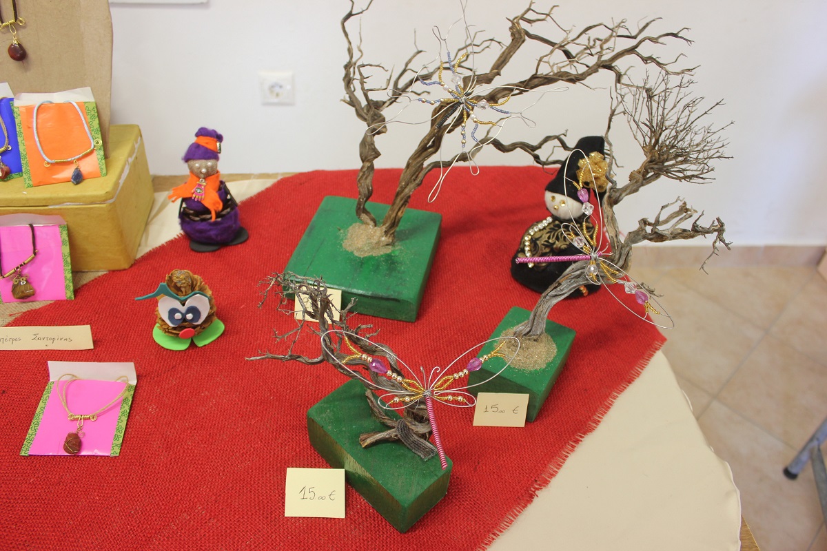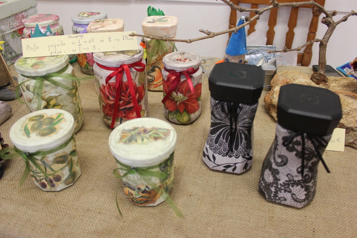 Οι επισκέπτες του έχουν την ευκαιρία να βρουν χριστουγεννιάτικα στολίδια, κοσμήματα από ασήμι και φερμουάρ, πλεκτά είδη (παιδικά σκουφάκια, τσάντες, μπολερό και μπλούζες), διακοσμητικά αντικείμενα από πηλό, ντεκουπάζ (μπουκάλια και ξύλινα κουτιά) και εορταστικά στεφάνια .