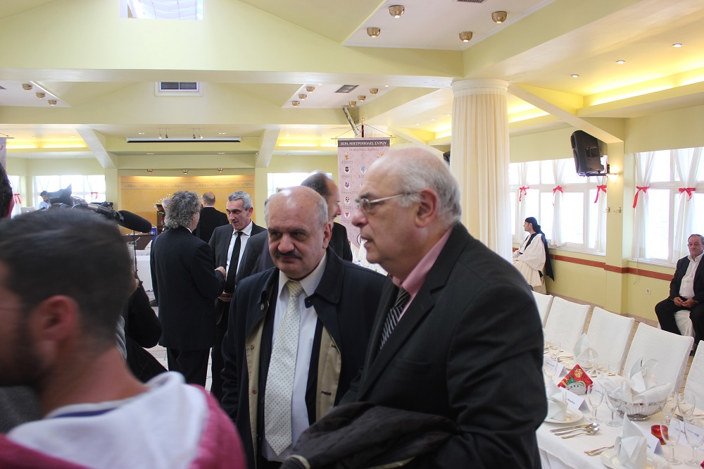 Τον Πρόεδρο της Δημοκρατίας υποδέχθηκε ο Δήμαρχος Σύρου – Ερμούπολης, Γιώργος Μαραγκός στην αίθουσα εκδηλώσεων γνωστού ξενοδοχείου της Ερμούπολης καθώς επίσης ο Σεβασμιώτατος Μητροπολίτης Σύρου κκ Δωρόθεος Β΄, ο Καθολικός Επίσκοπος Σύρου, Σεβ. π. Πέτρος Στεφάνου, αλλά και ο κυβερνητικός βουλευτής, Αντώνης Συρίγος, ο Περιφερειάρχης Νοτίου Αιγαίου, Γιώργος Χατζημάρκος αλλά και εκπρόσωποι των Διοικήσεων του Ελληνικού Στρατού, των Σωμάτων Ασφαλείας και πολλοί αιρετοί των δύο βαθμών της Αυτοδιοίκησης.