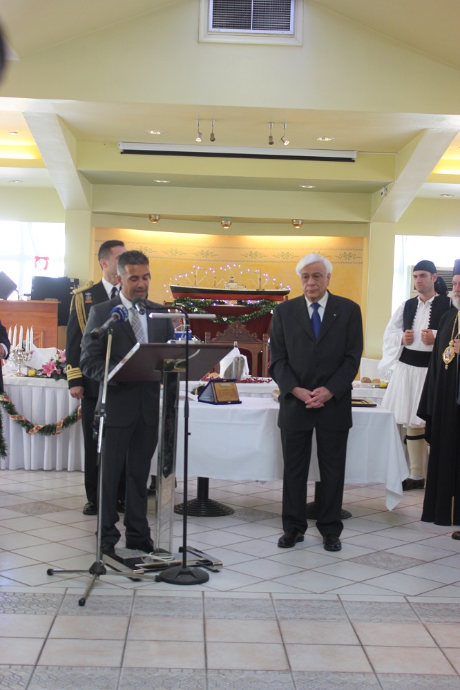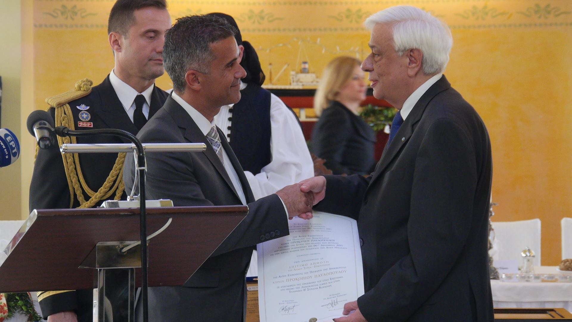 Κατόπιν του χαιρετισμού του κ. Προκόπη Παυλόπουλου, ο οποίος εξέφρασε την ευγνωμοσύνη του για την τιμή προς το πρόσωπό του, την οποία και απεδέχθη όπως υπογράμμισε κατηγορηματικά, μόνον ως τιμή προς τον ίδιο τον θεσμό της Δημοκρατίας, του απονεμήθηκε η τιμητική πλακέτα καθώς και ένας πίνακας ζωγραφικής του εικαστικού, Μιχάλη Μακρουλάκη.