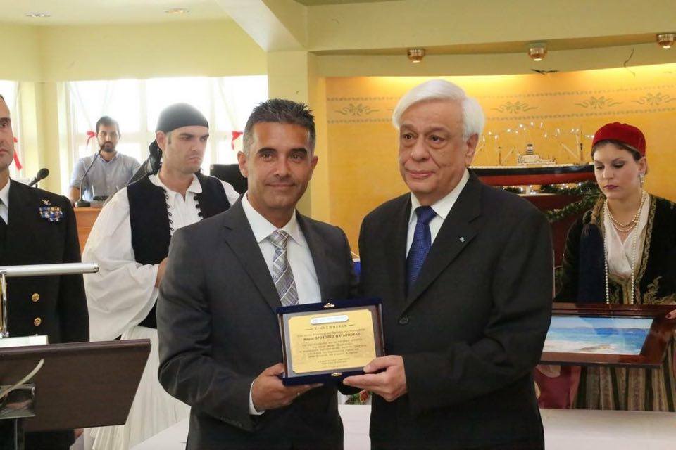 Εν συνεχεία, ο Δήμαρχος Σύρου – Ερμούπολης προσέφερε στον Πρόεδρο της Δημοκρατίας τον πάπυρο ανακήρυξής του σε Επίτιμο Δημότη, την τιμητική πλακέτα, καθώς και έναν πίνακα, φιλοτεχνημένο από τον συντοπίτη μας και καταξιωμένο ζωγράφο, κ. Μιχάλη Μακρουλάκη, ως υπόμνηση της ευγνωμοσύνης του συριανού λαού προς το πρόσωπό του.